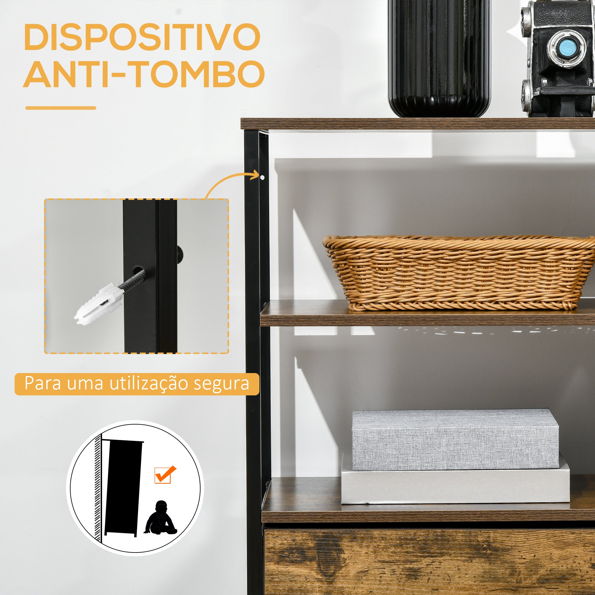 Cómoda com 4 Gavetas de Tecido Dobrável e 2 Prateleiras Abertas Armário de Armazenamento para Escritório Dormitório Estilo Industrial Anti-Tombo 84x30x71,4cm Marrom Rústico