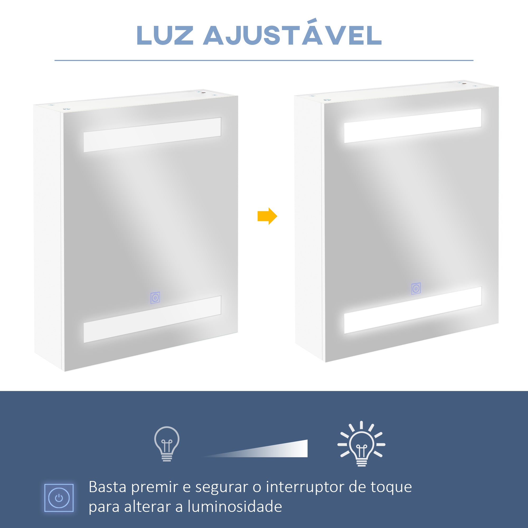 - Interruptor de toque, permite ajustar a luz pressionando longamente por 3 segundos