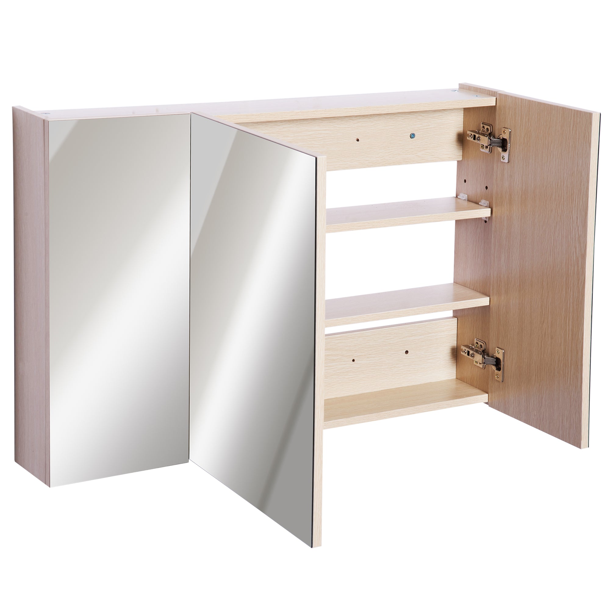 Armário Casa de Banho com Espelho Móvel Casa de Banho com Espelho 3 Portas e Prateleiras Ajustáveis Estilo Moderno 90x60x13,5 cm Carvalho