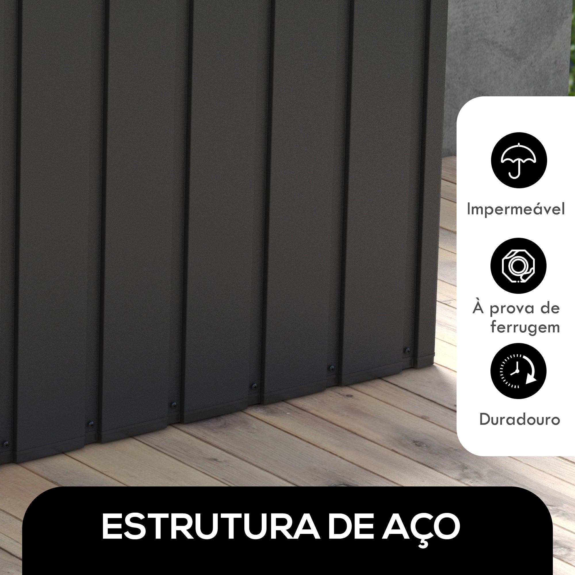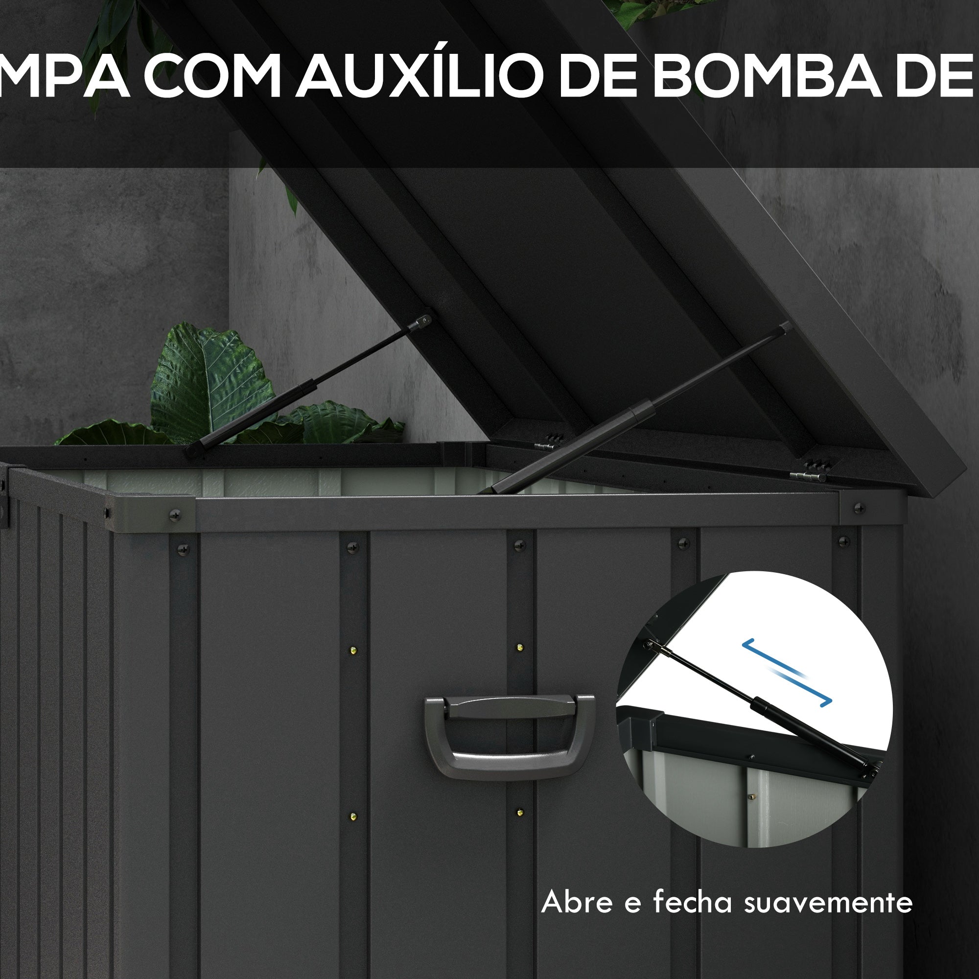 - ESTRUTURA EM AÇO: Este baú de exterior da Outsunny é fabricado em aço durável, perfeito para resistir ao vento, sol e chuva. A sua tampa com bordos prolongados ajuda a evitar infiltrações de água, mantendo o interior seco e protegido em qualquer momento.