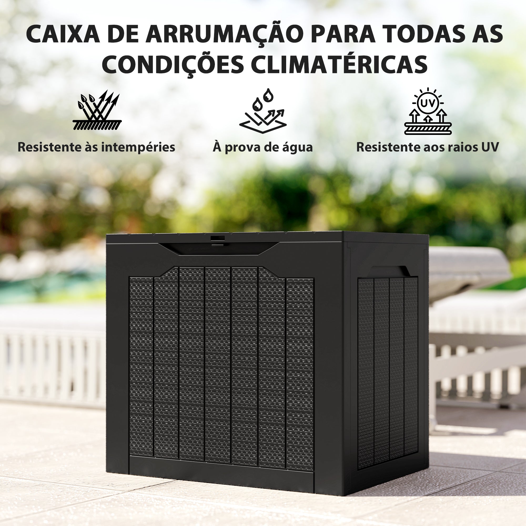 - MATERIAL IMPERMEÁVEL: Fabricada em polipropileno fácil de manter, este contentor de armazenamento para exterior foi projetado para resistir a todas as condições climáticas, sendo uma escolha fiável para uso prolongado
