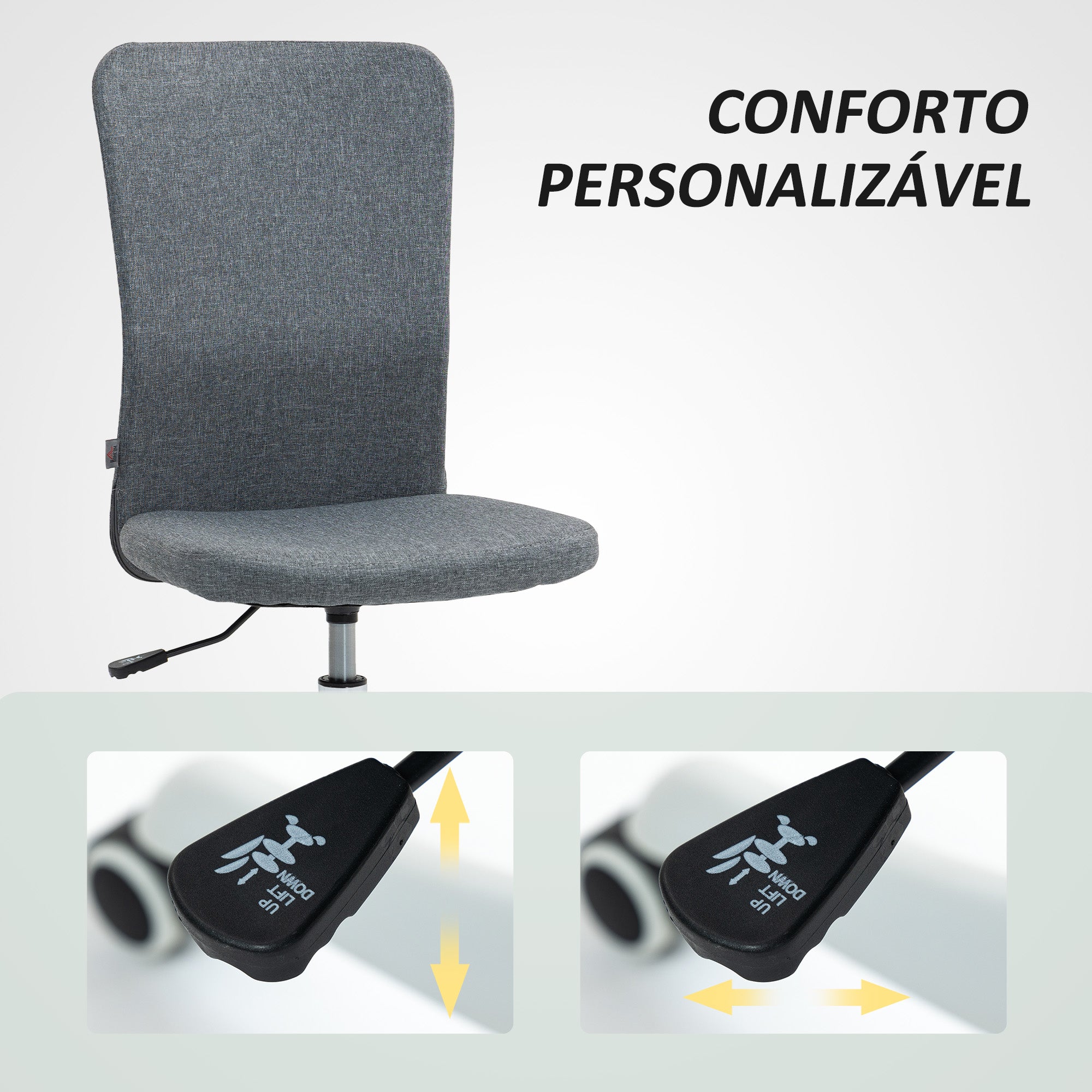 Cadeira de Escritório sem Apoio para os Braços Cadeira de Escritório Giratória Estofada em Linho Sintético com Altura Ajustável para Estudo Dormitório Tocador Carga 120 kg 53x43x85-93 cm Cinza