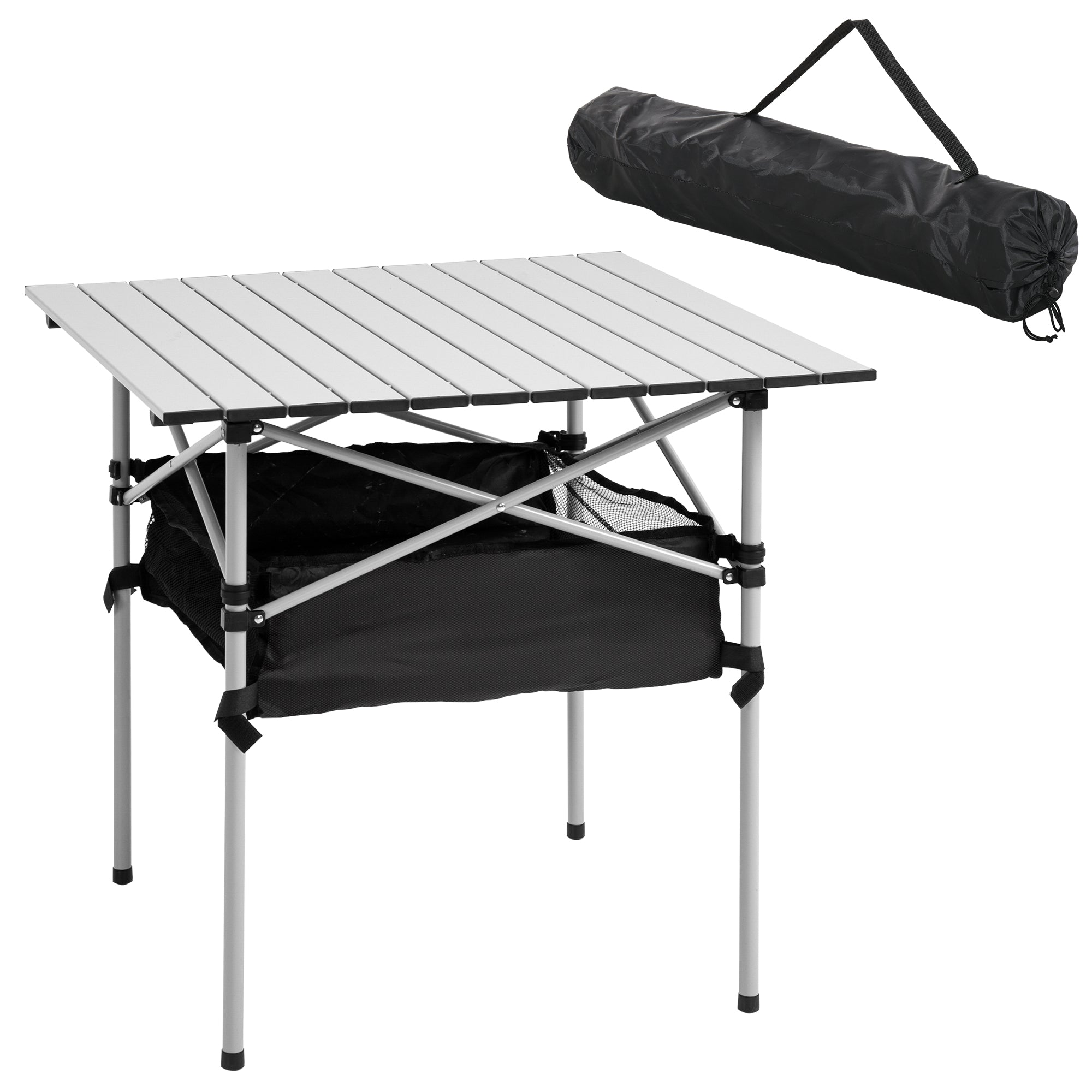 - 1 x Instrução Desfrute do ar livre com esta mesa de jardim portátil da Outsunny. Pode ser usado como mesa de jantar, mesa lateral de churrasco, mesa de jogos, etc. Perfeito para levar para acampar, para a praia, para um piquenique ou colocar no quintal ou jardim na hora certa. Feito de metal, possui uma parte superior de alumínio com venezianas e uma cesta inferior de malha para um bom espaço de armazenamento extra. Ele vem com uma bolsa para armazenamento e armazenamento.