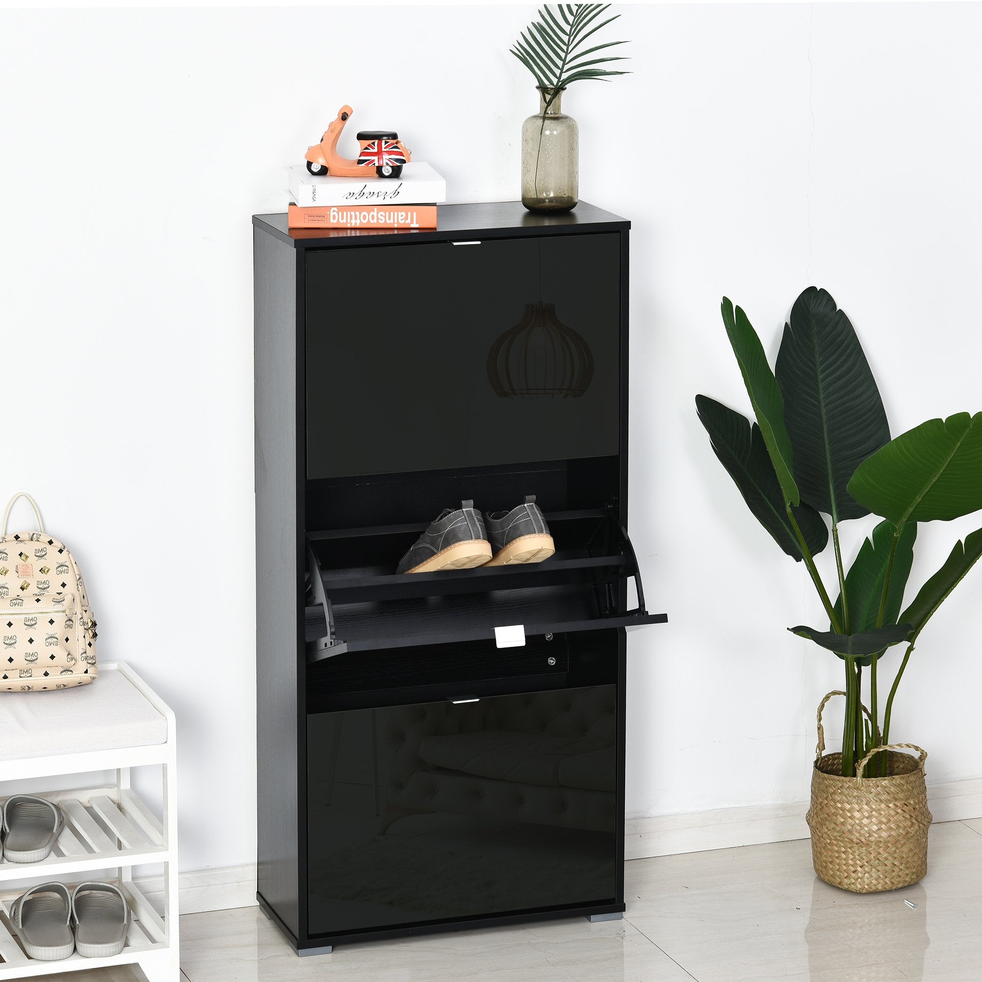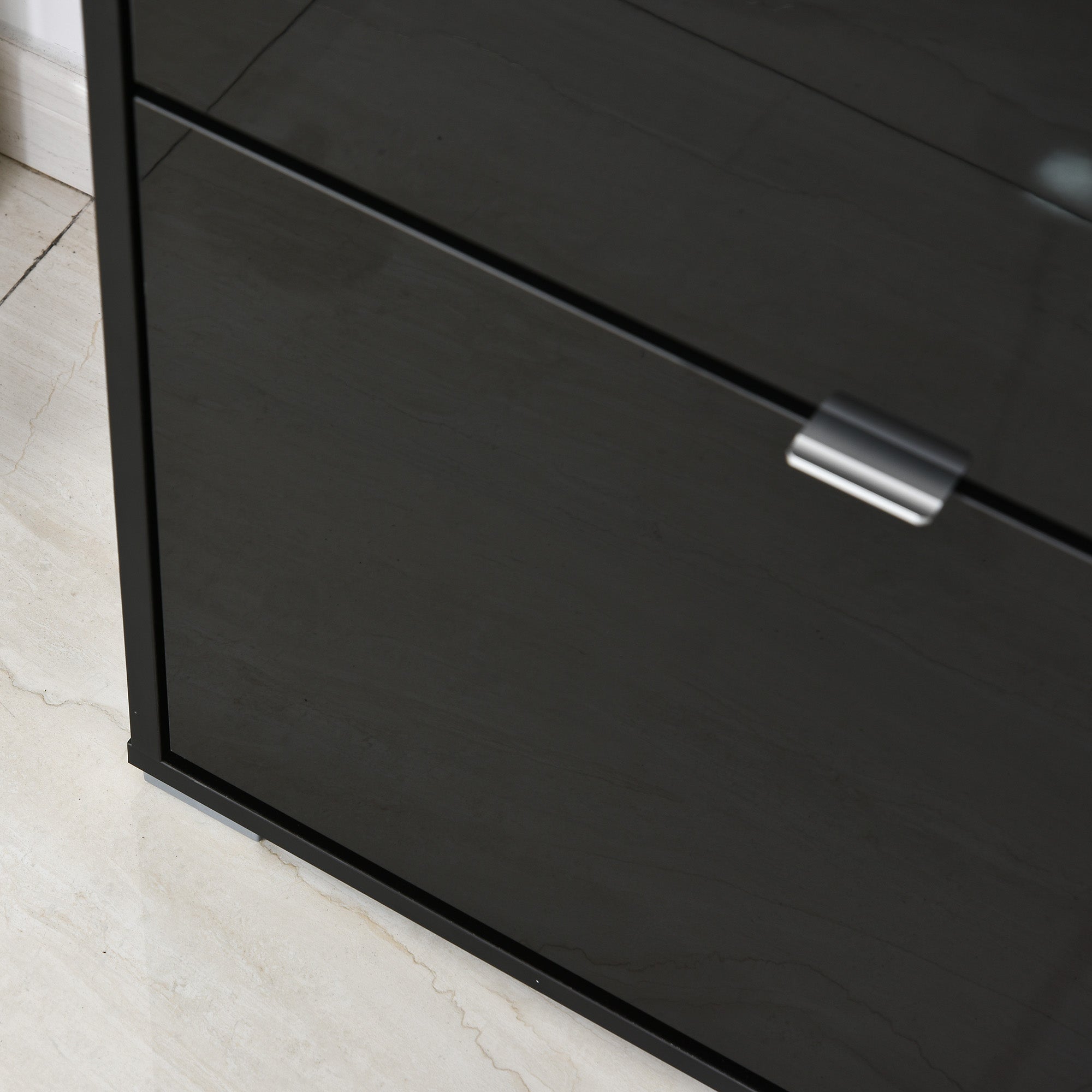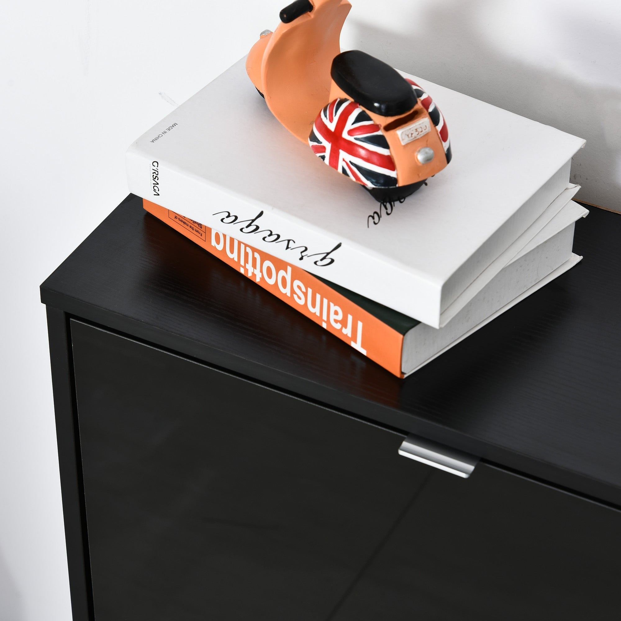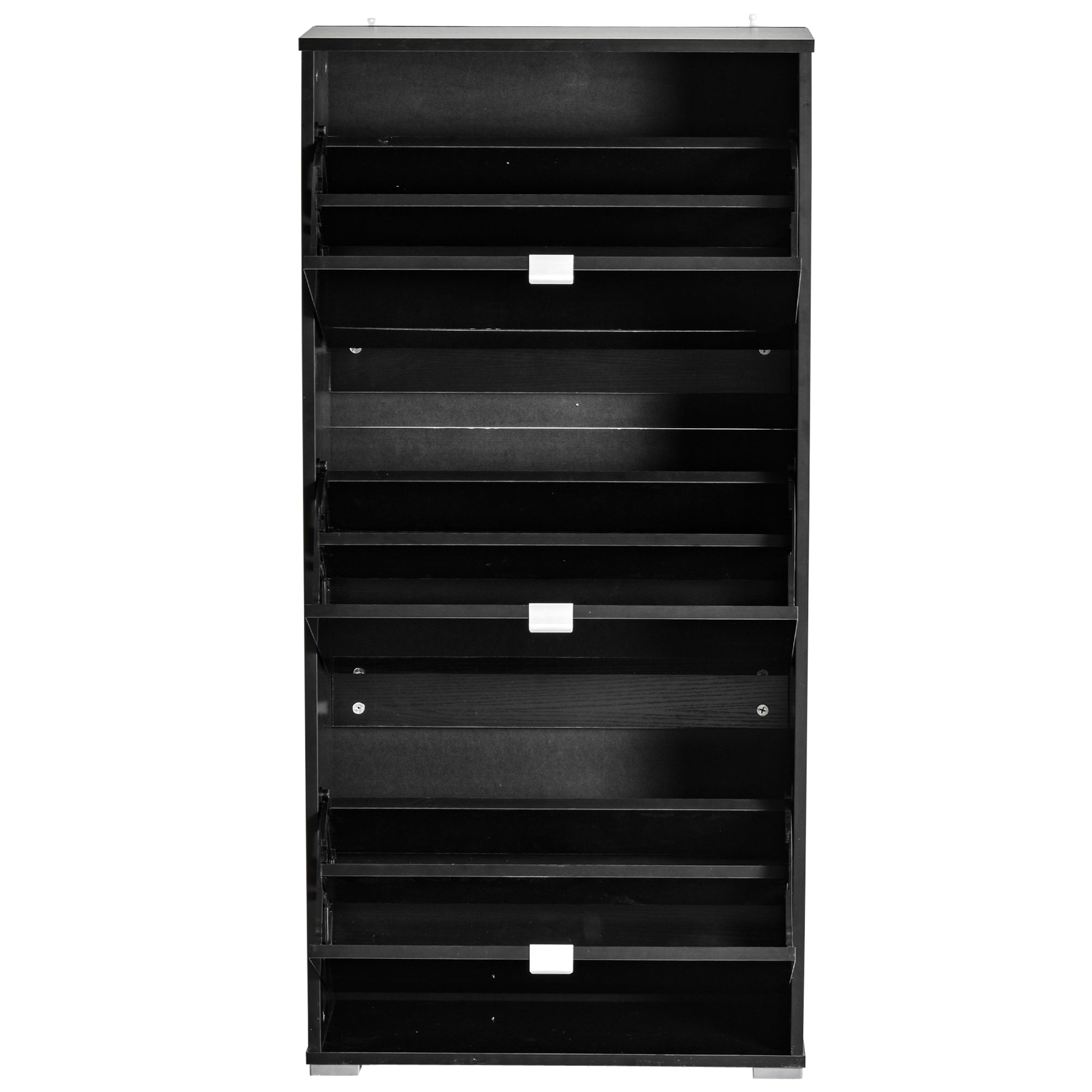 Armário de sapatos com 6 prateleiras Porta Inclinada capacidade de 18 Pares Preto