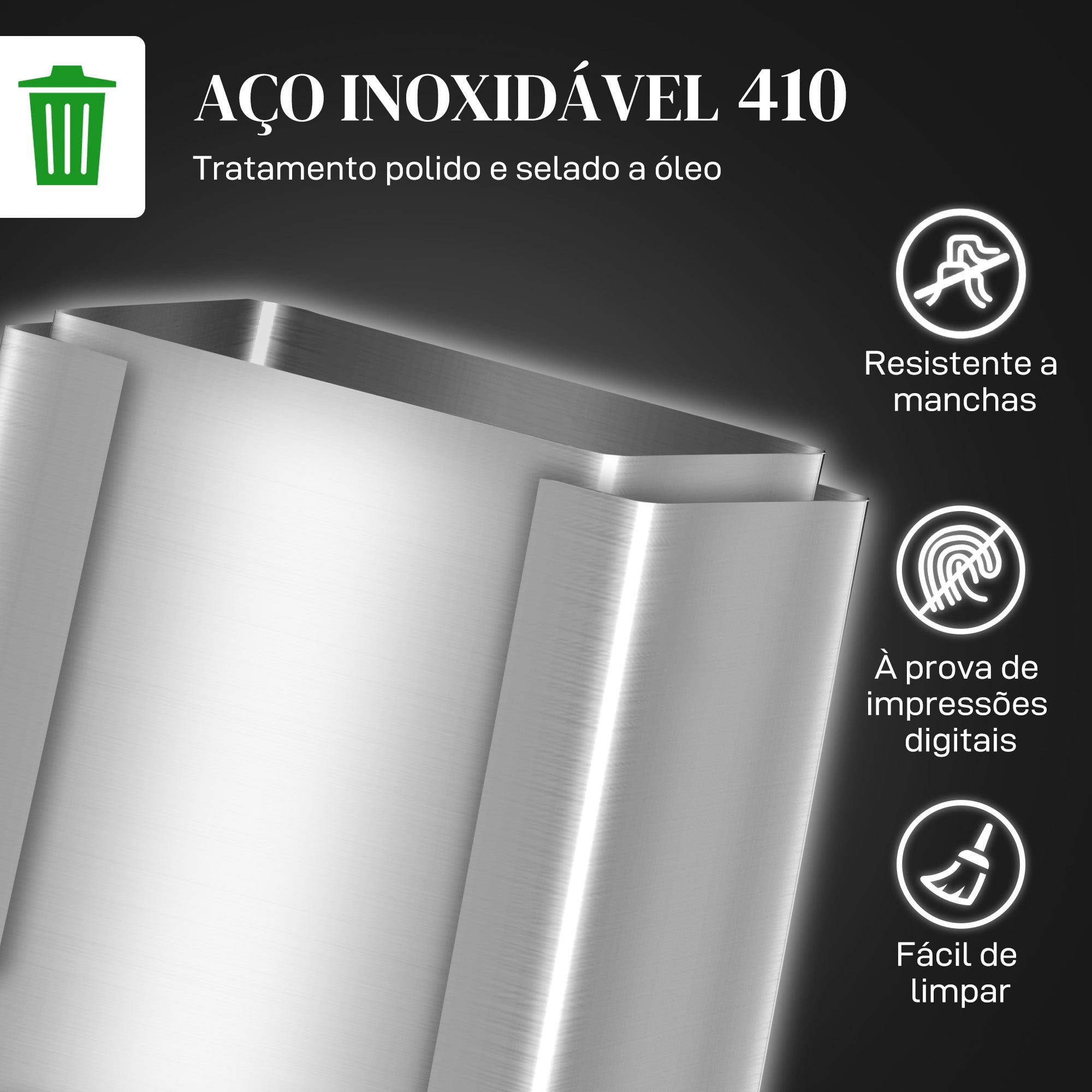 - Composto por 2 compartimentos com 20L cada, ideal para separar eficazmente os resíduos Tampa com fecho suave e função de permanecer aberta, incluindo compartimentos para desodorizante para controlar odores Fabricado em aço inoxidável 410 resistente a marcas de dedos, com acabamento polido e revestido com óleo Desenho elegante e moderno, adequado para cozinhas, estúdios ou espaços de escritório Dois cubos internos removíveis para facilitar a limpeza Pedal de pé para abrir sem usar as mãos Pegas laterais para transporte fácil Não necessita de montagem