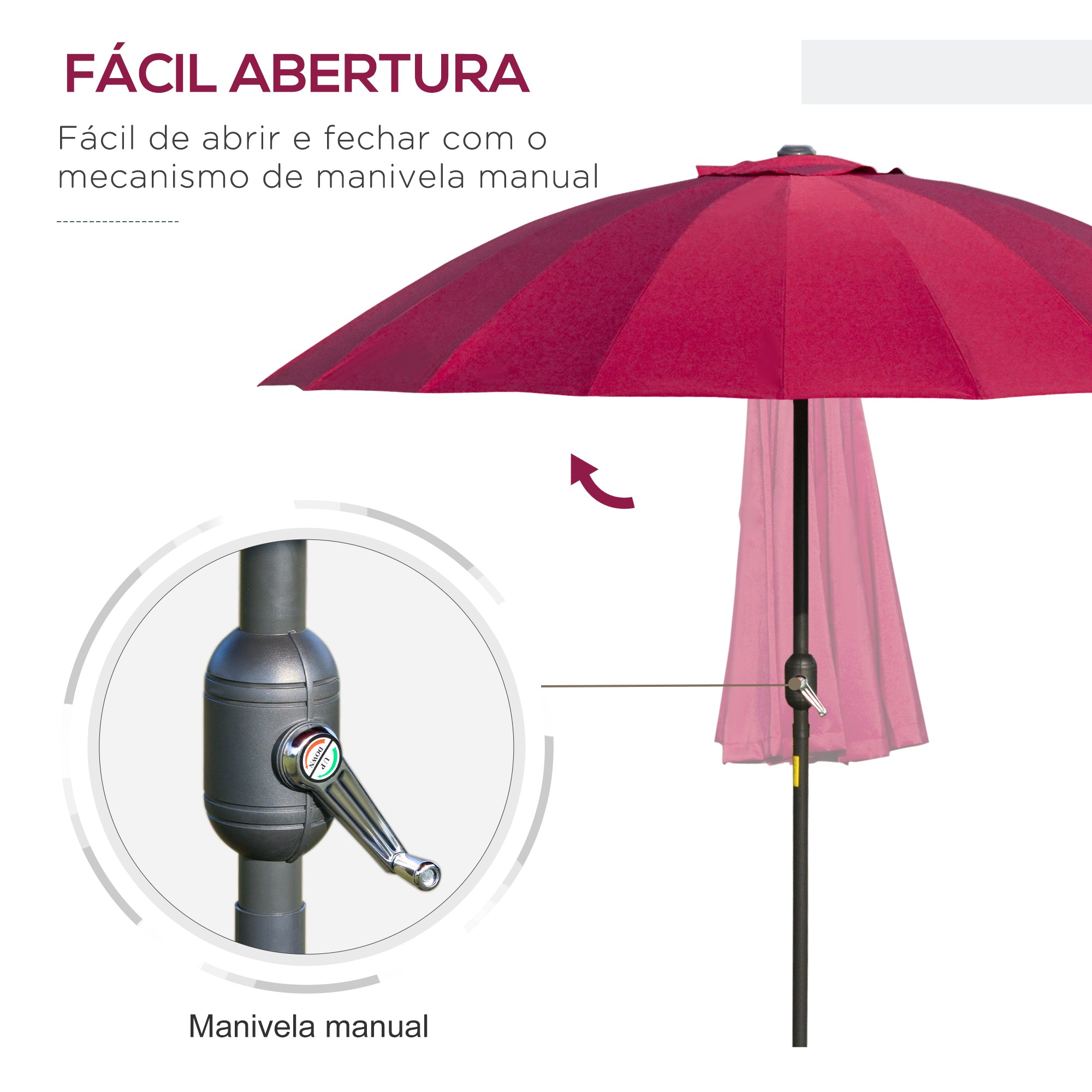 Chapéu de Sol de Jardim Ø2,5x2,4 m Chapéu de Sol de Terraço com Manivela Manual Mastro Flexível Impermeável e 18 Varas Exterior Vinho