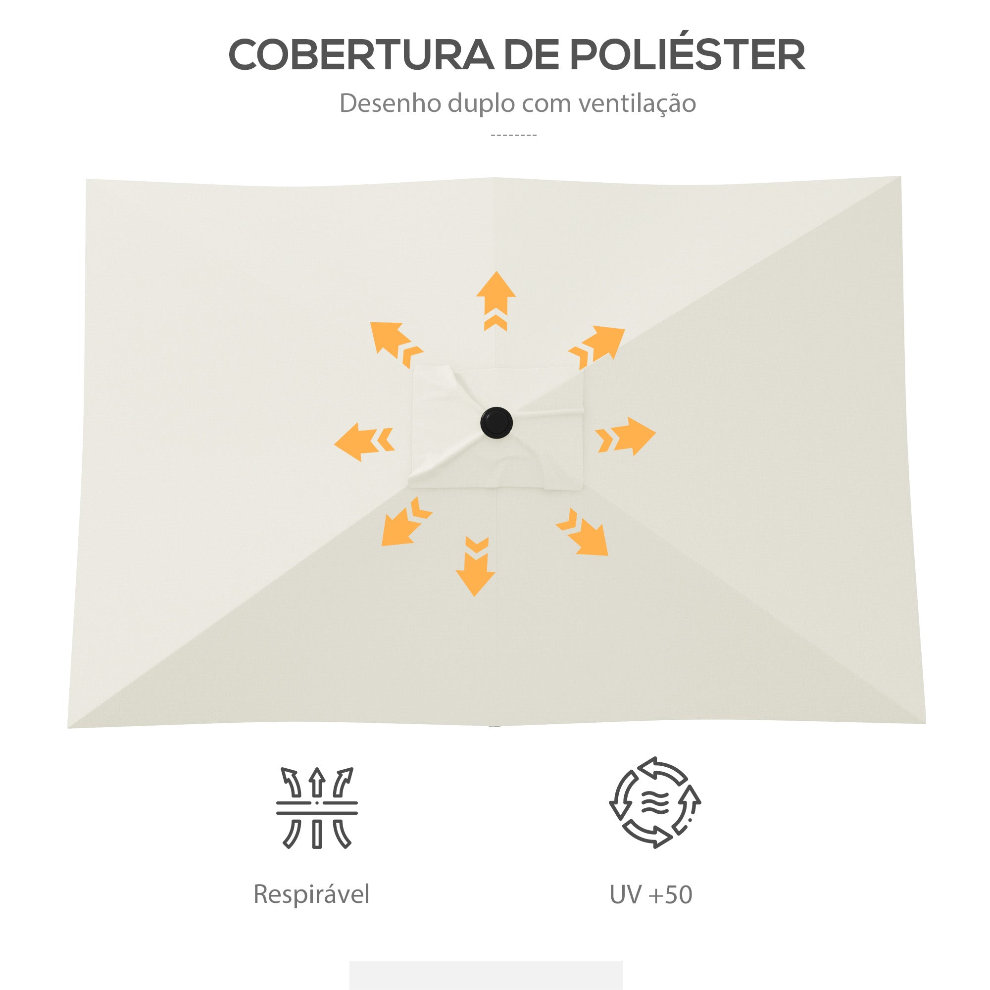 - TETO COM VENTILAÇÃO: Este chapéu de sol possui uma coberura de teto com ventilação, que proporciona maior estabilidade em dias de vento, melhor ventilação e também ajuda a dissipar o calor