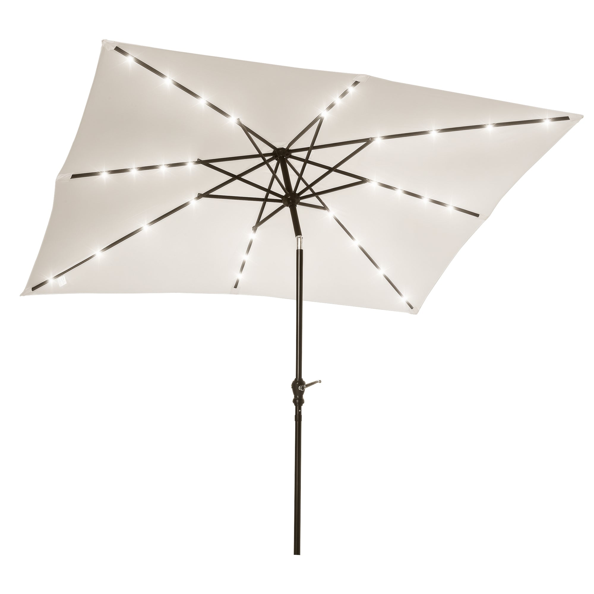 - Chapéu de sol com luzes LED ideal para proporcionar sombra durante o dia e iluminar durante as noites Com luzes LED alimentadas por energia solar ideal para manter o seu espaço iluminado por até 4 horas possui um ângulo de inclinação de até 45°, perfeito para ajustar conforme as incidências dos raios solares Fácil abertura e fechamento através da manivela Ideal para varandas, pátios, jardins e muito mais Requer uma fácil montagem Nota: Não utilizar em condições climáticas adversas. A base NÃO está incluída