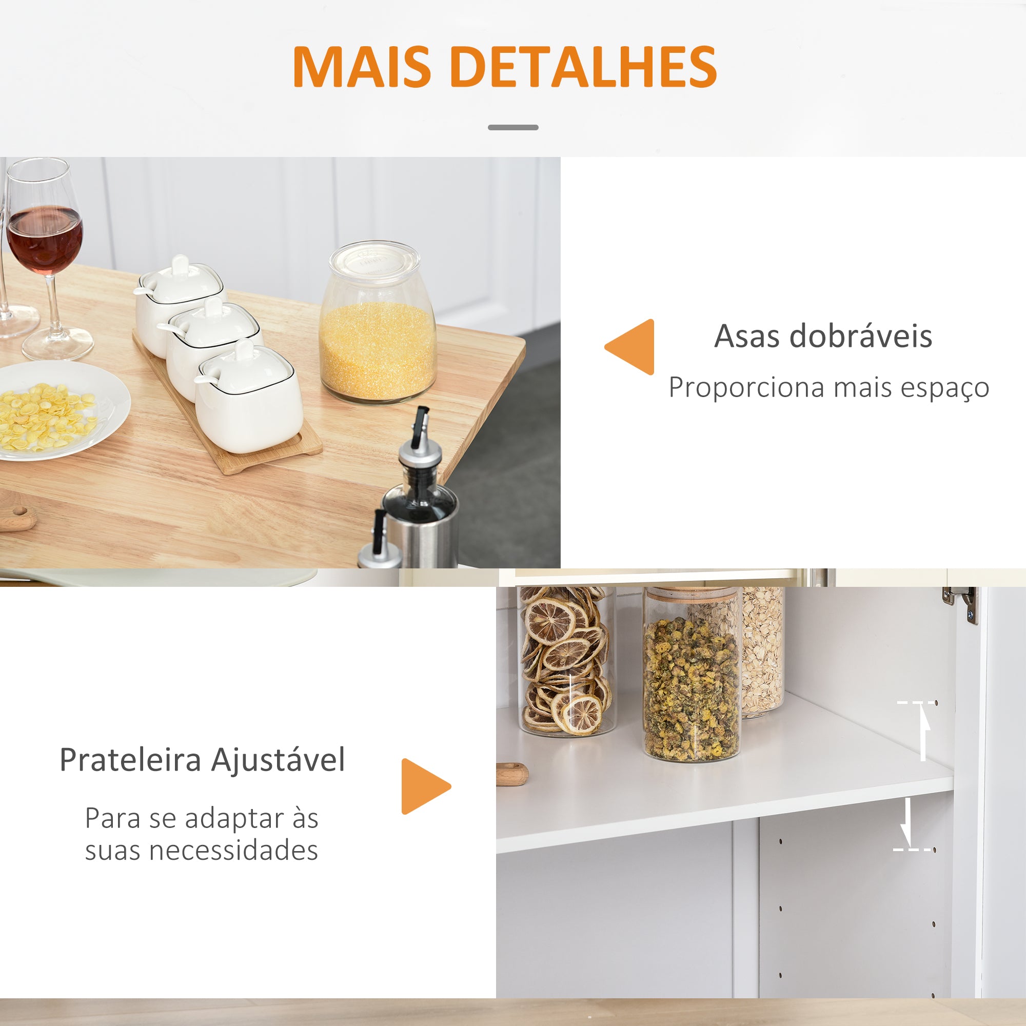 - AMPLO ESPAÇO DE ARMAZENAMENTO: Este carrinho ilha de cozinha conta com uma ampla bancada, 3 gavetas e um armário de 2 portas com prateleira ajustável. Ideal para guardar seus utensílios de cozinha, tais como pratos ou talheres