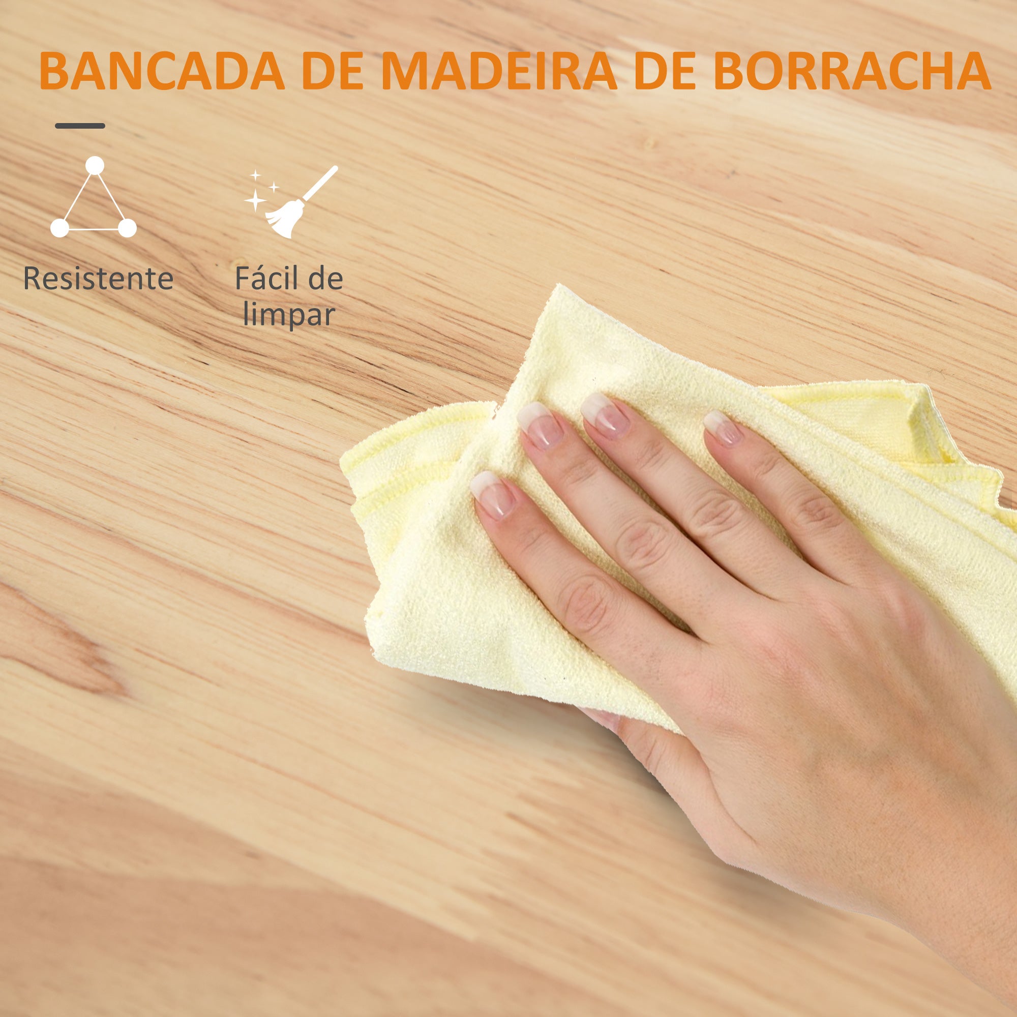- A bancada de madeira de borracha é resistente e fácil de limpar