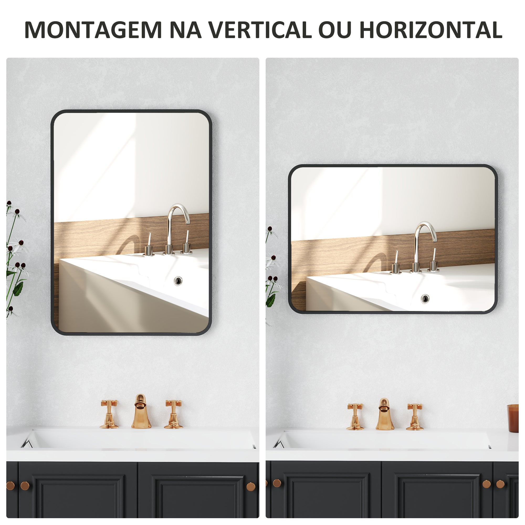 Espelho Casa de Banho 50x70 cm Espelho Retangular Espelho de Parede com Estrutura de Metal Vertical e Horizontal para Entrada Sala de Estar Preto