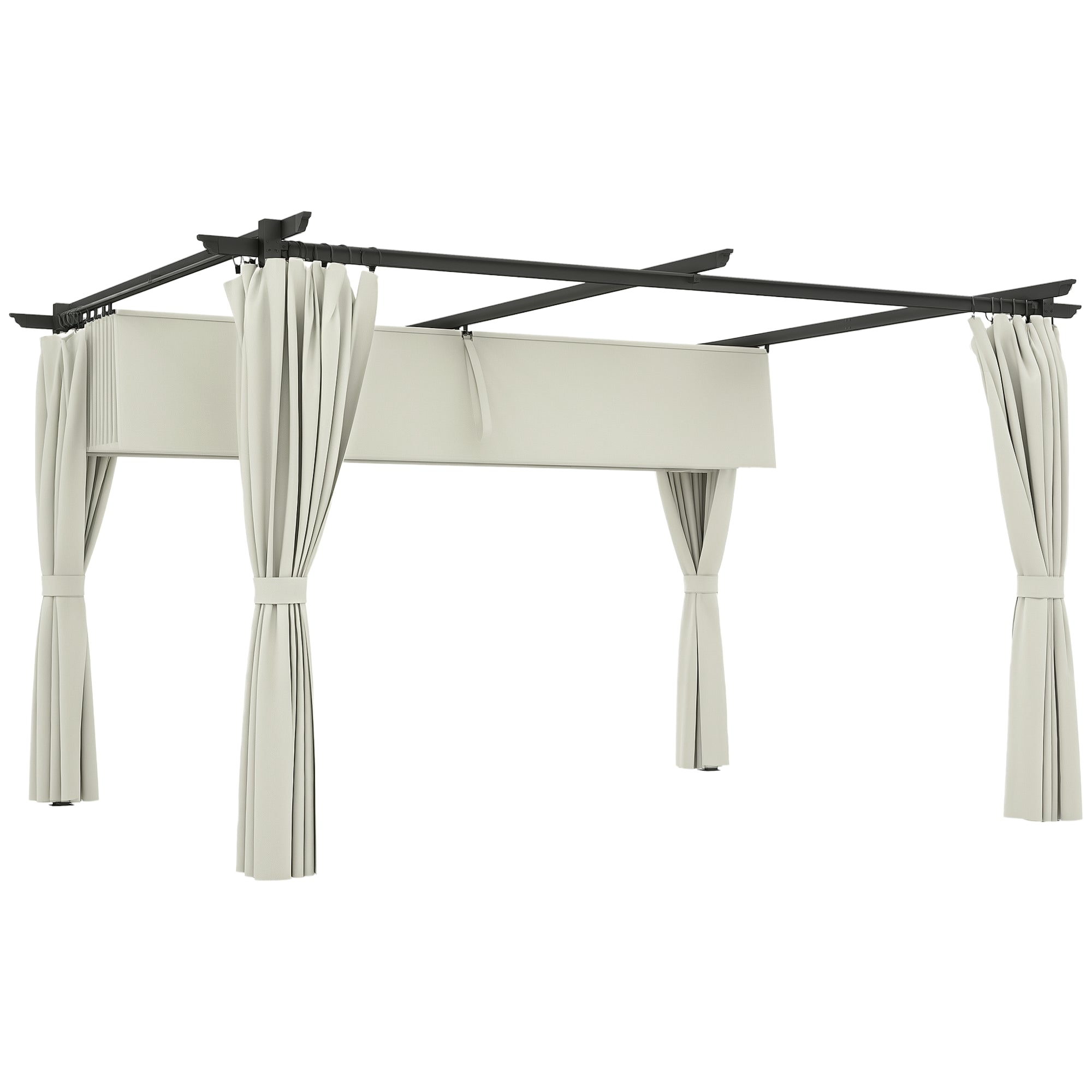 - 1 x Manual de instruções; Transforme o seu jardim num refúgio com esta pérgola da Outsunny. Inclui quatro cortinas laterais para maior privacidade, permitindo criar um espaço ideal para eventos íntimos ou momentos de descanso ao ar livre. A cobertura retrátil com UPF30+ protege·o do sol e da chuva, e o seu movimento suave oferece conforto nos seus momentos de lazer ao ar livre.