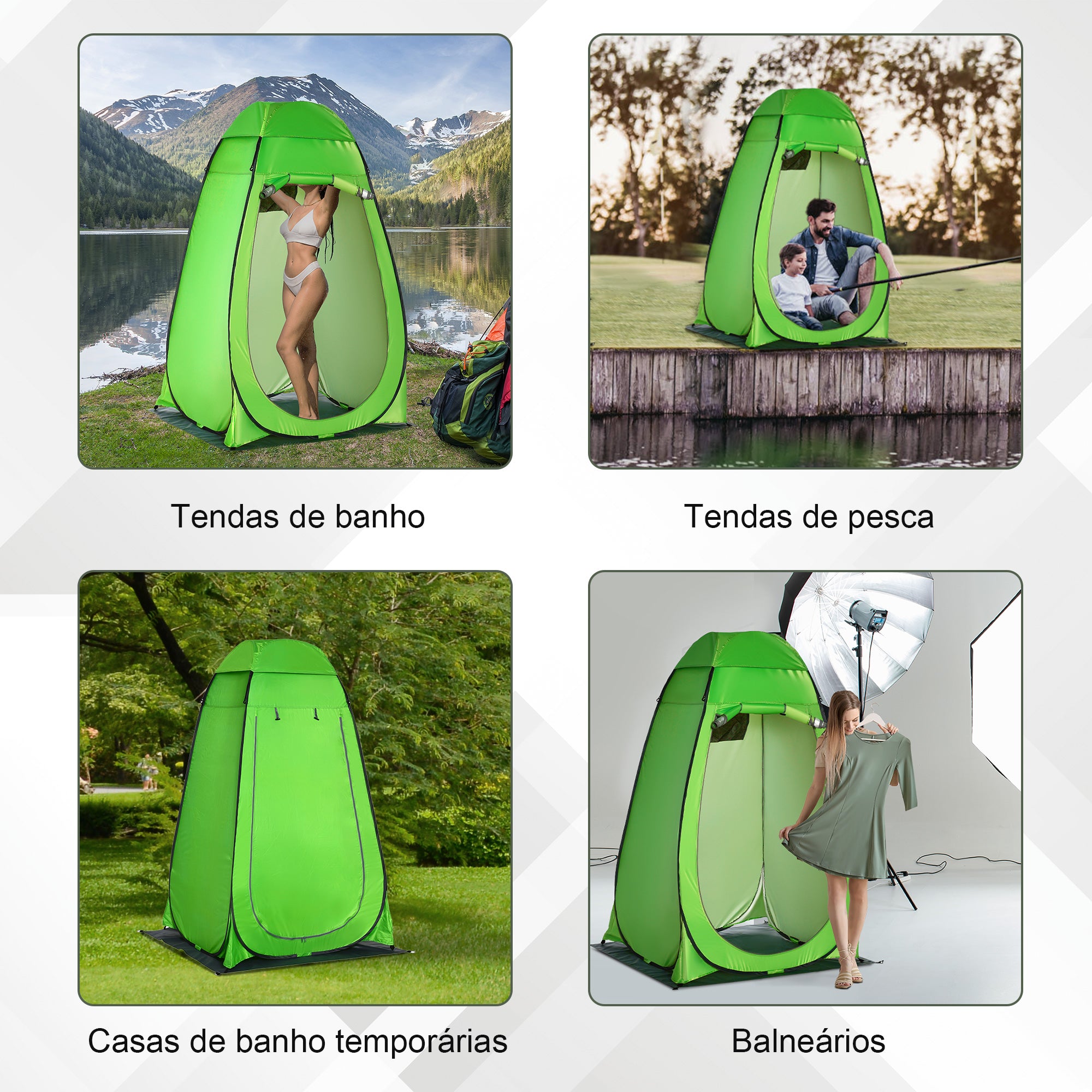 Tenda de Duche Tenda de Privacidade Portátil com 1 Gancho Bolso Bolsa de Transporte e UV20+ para Duche Trocador Sanita 126x124x189 cm Verde
