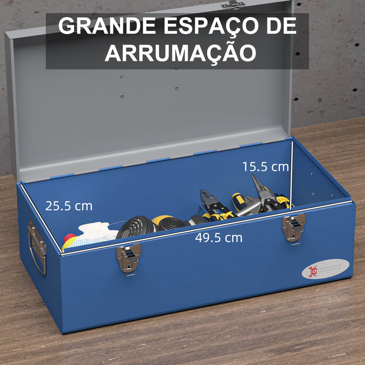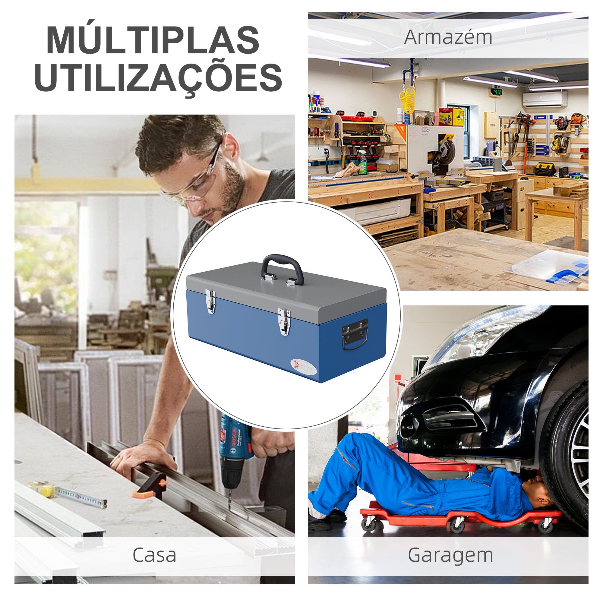 Caixa de Ferramentas Metálica Baú de Ferramentas de Aço 50x26x18,5 cm com Pegas de Transporte Carga 20 kg Cinza e Azul