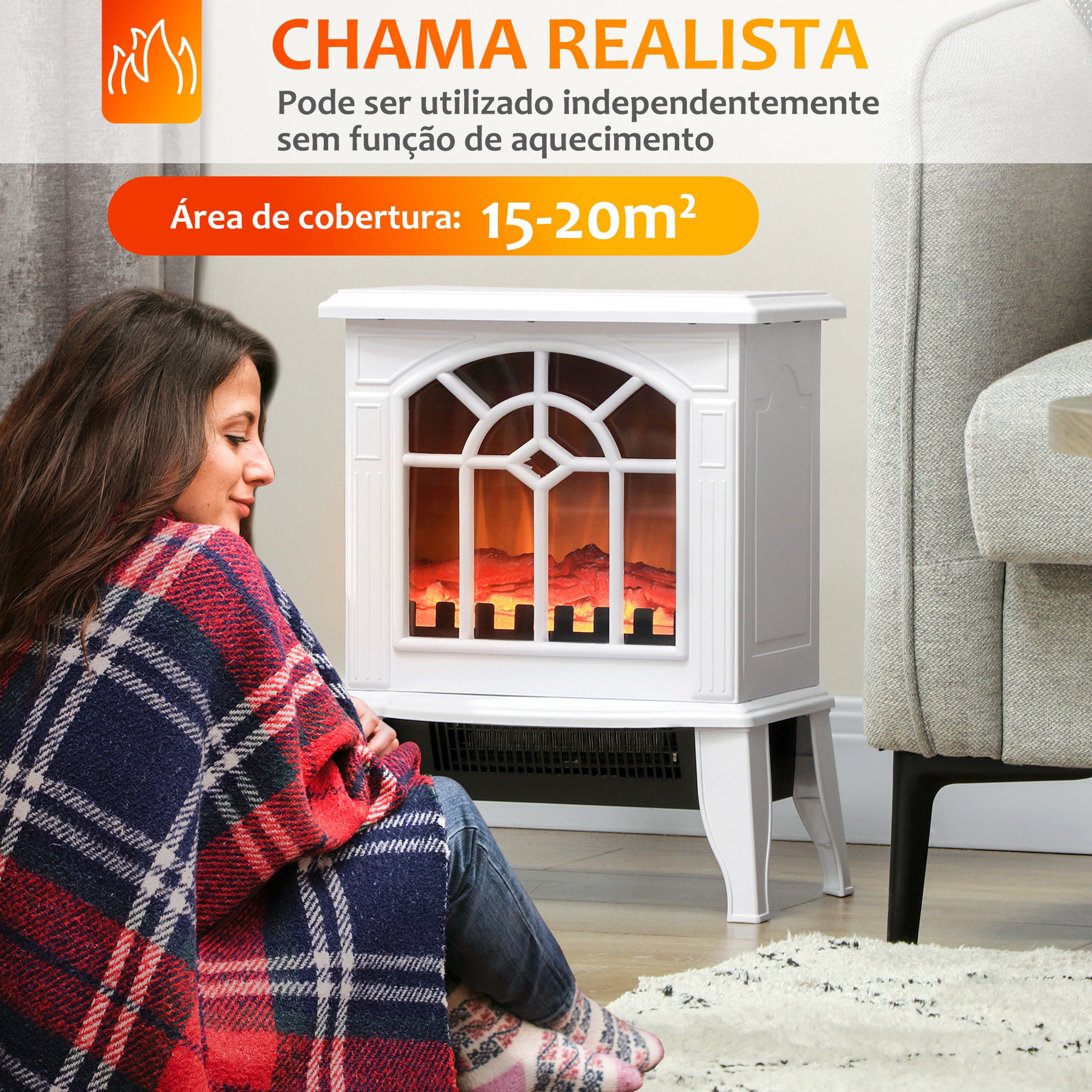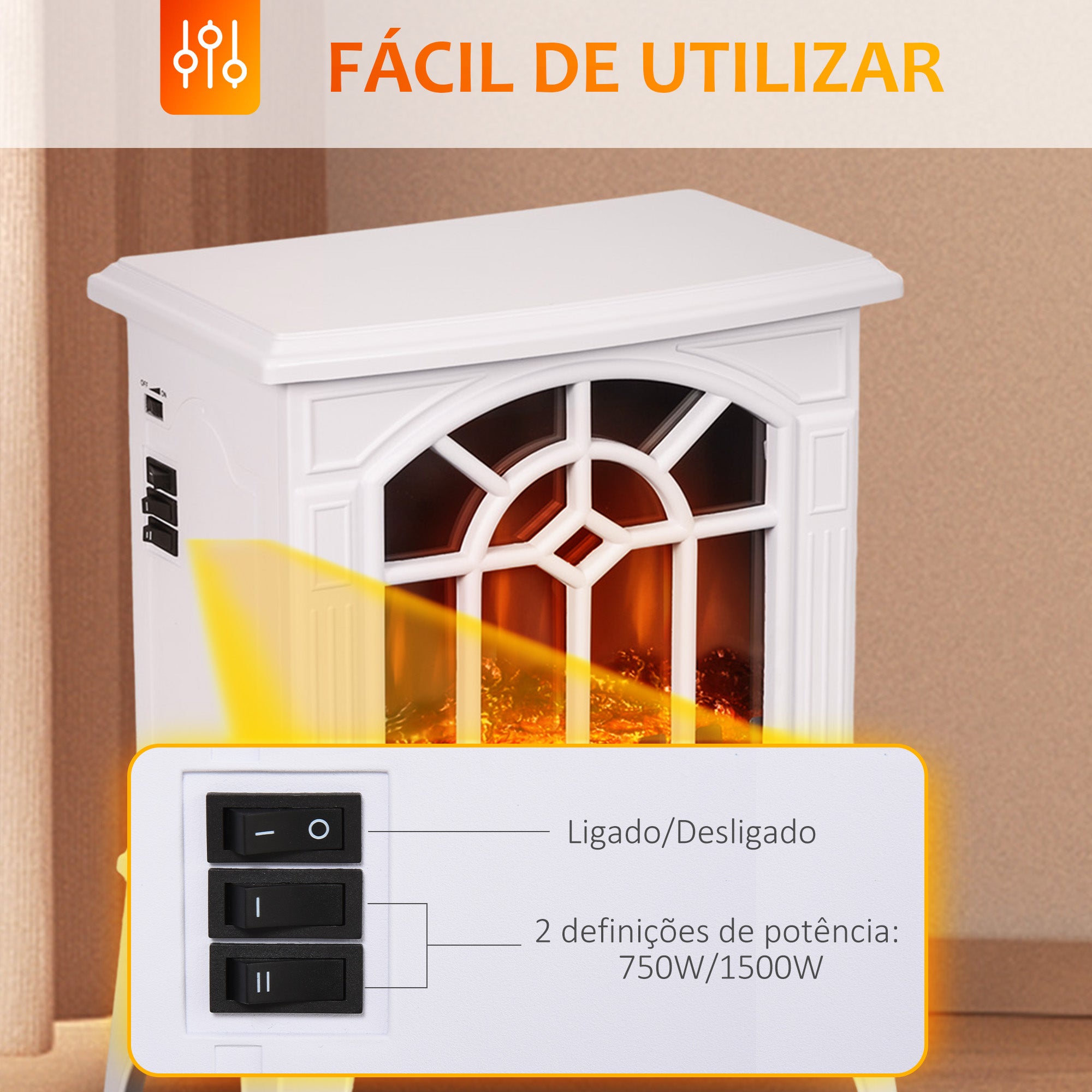 Lareira Elétrica Portátil 1000/2000W com Simulação de Chama Realista Termostato para Salas de até 20m² 36,5x24x46 cm Branco