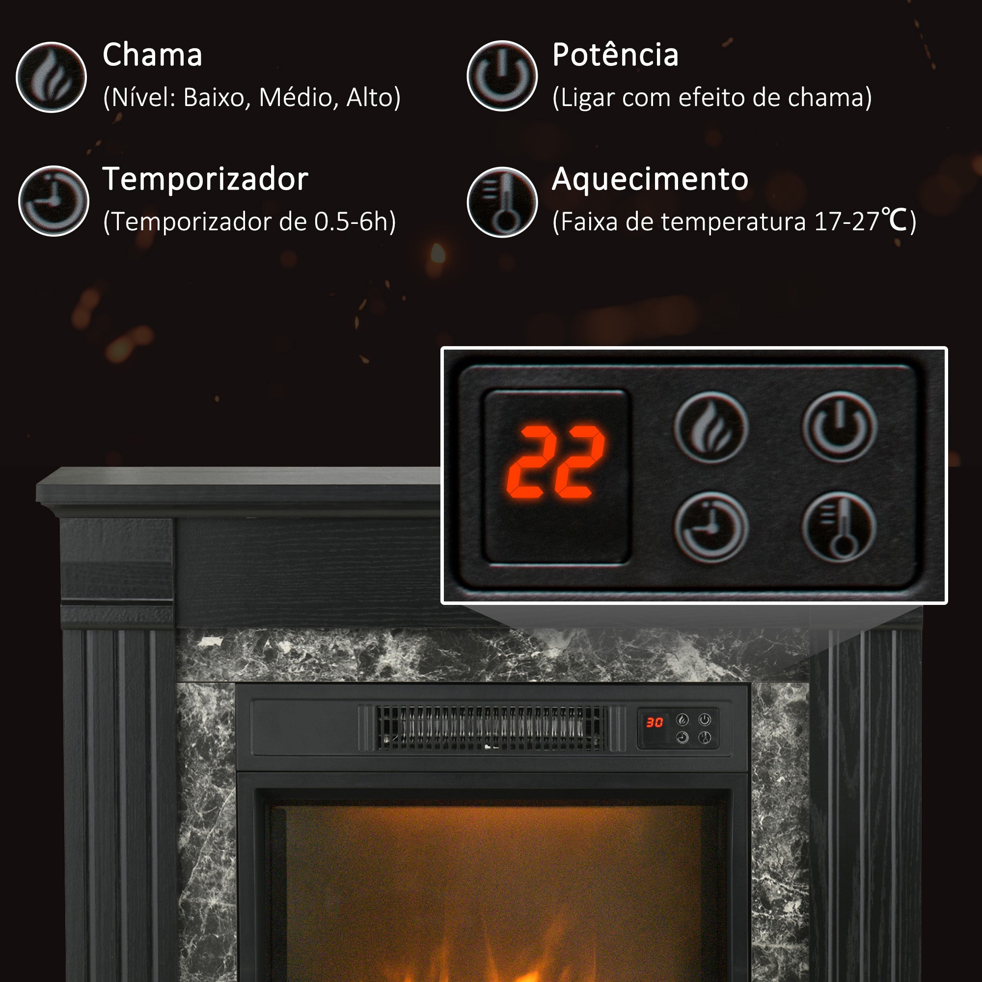 Lareira Elétrica 1800W Lareira com Efeito de Chama Realista Controlo Remoto Temporizador e Proteção Contra Superaquecimento para Ambientes de 30 m² 80x21,6x67,8 cm Preto