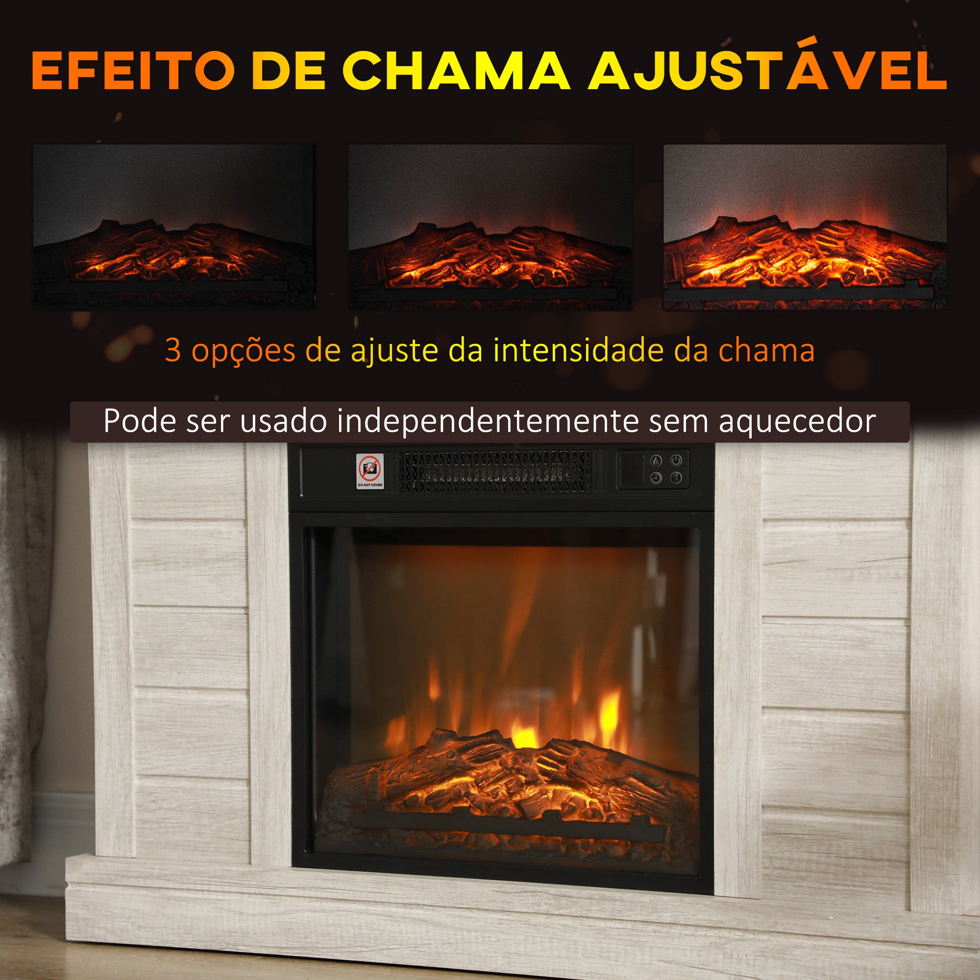 Lareira Elétrica 1800W Lareira Decorativa com Efeito de Chama Realista Controlo Remoto Temporizador Semanal Proteção Contra Sobreaquecimento para Ambientes de 30 m² 96,5x22x81,7 cm Madeira Clara