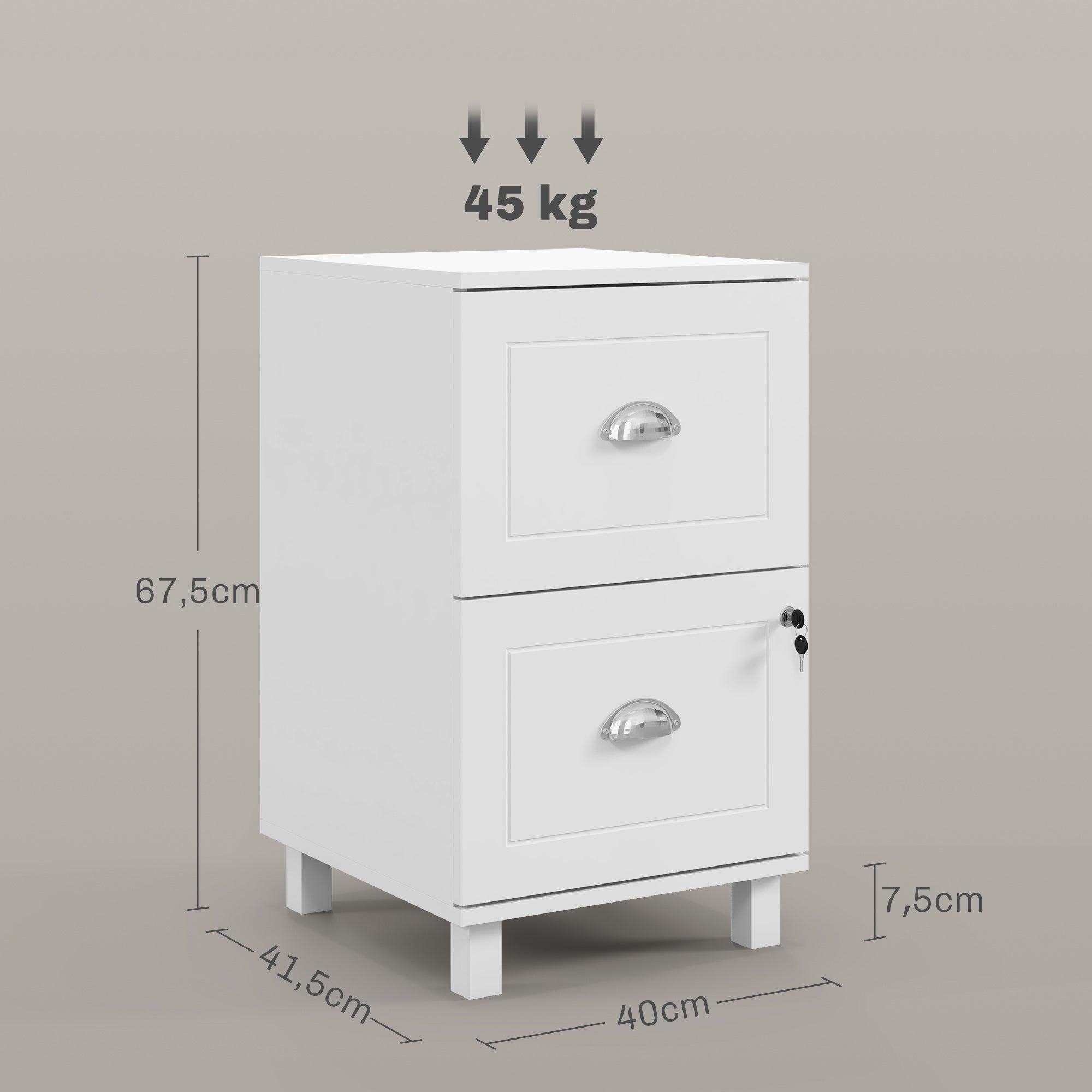 Bloco de Gavetas para Escritório Móvel Arquivador com 2 Gavetas para Escritório com Fechadura e Barras para Documentos A4 e Carta 40x41,5x67,5 cm Branco
