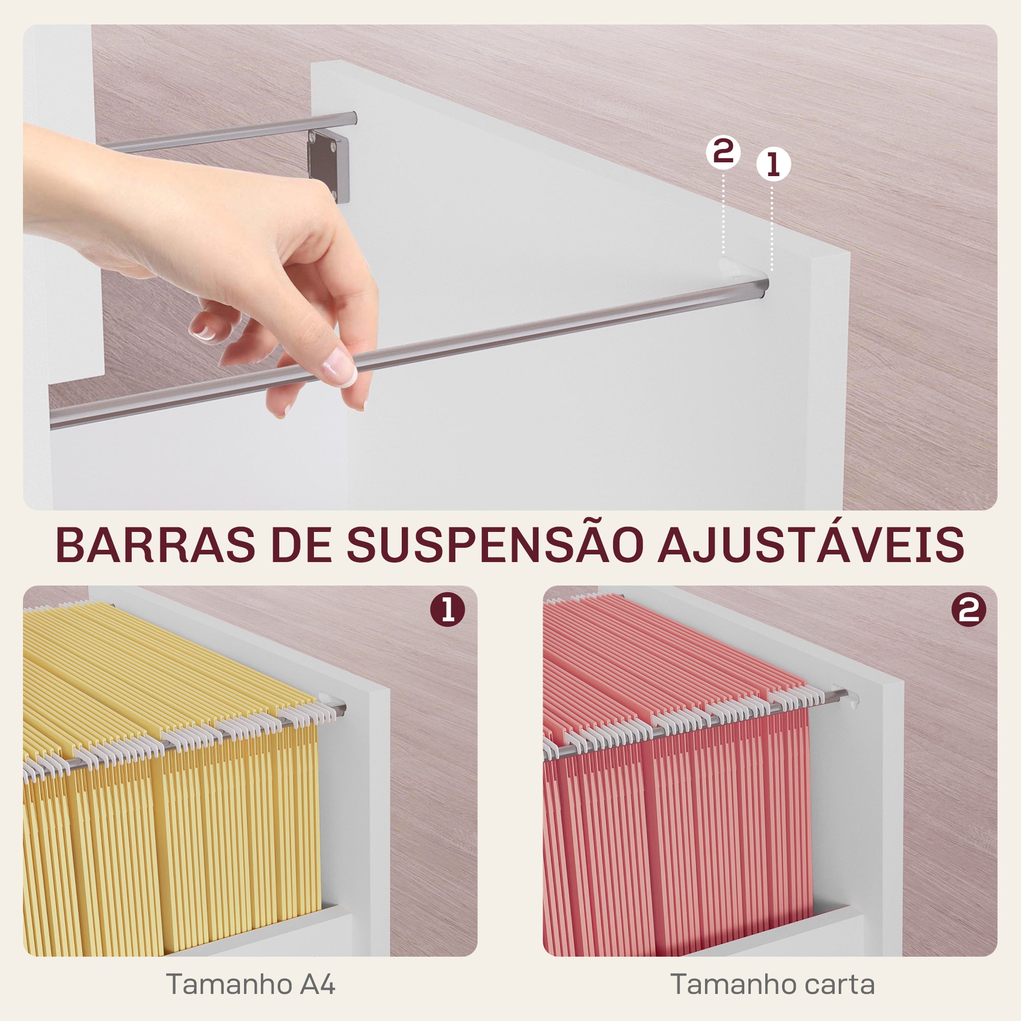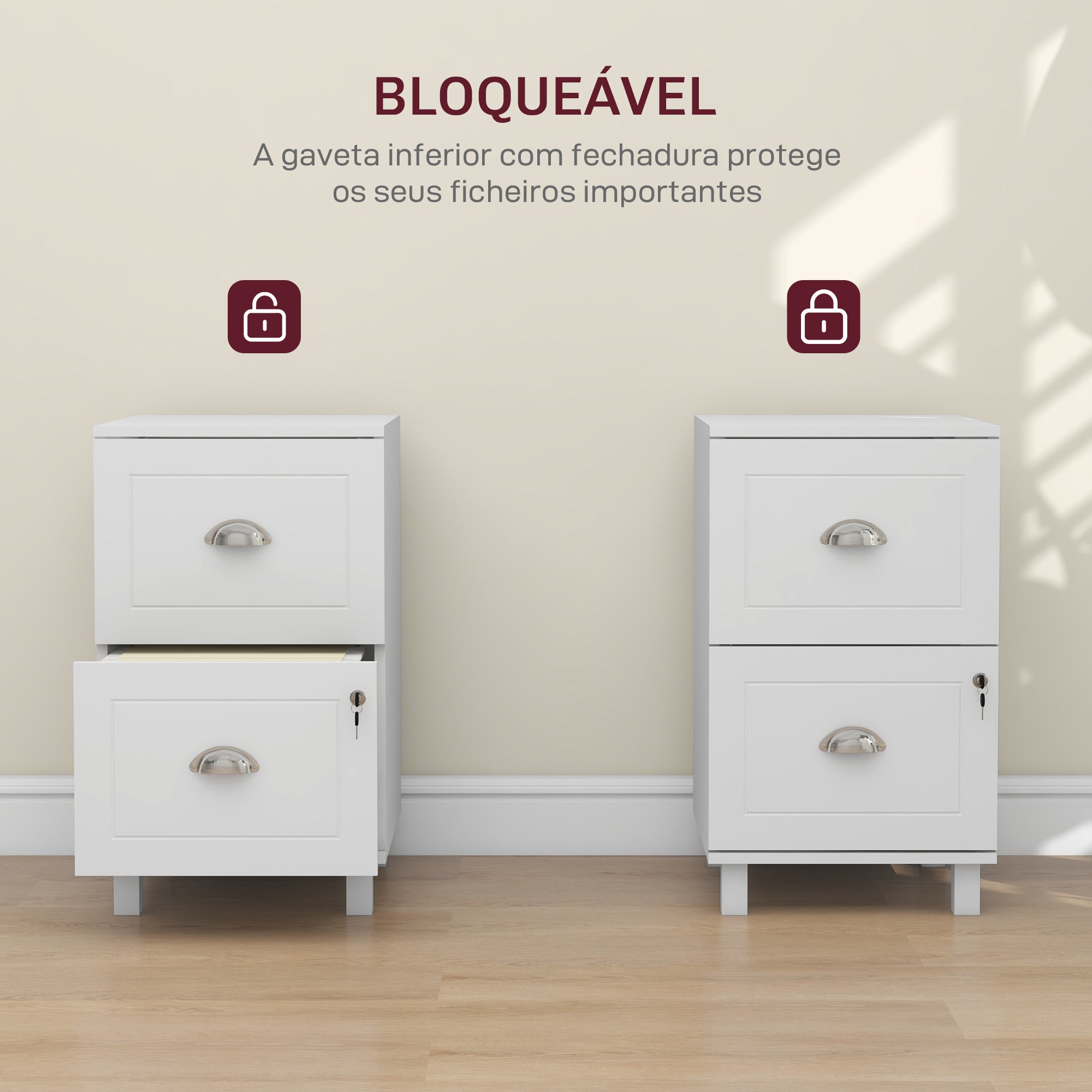 - 1 x Manual de instruções; Otimize o seu espaço de trabalho com este bloco de gavetas com fechadura da HOMCOM. Desenhado com 2 gavetas e barras ajustáveis, permite organizar documentos em tamanho A4 e carta com facilidade. A sua gaveta inferior com fechadura garante a segurança de arquivos importantes. Compacto e funcional, é ideal para colocar sob a secretária e aproveitar ao máximo qualquer escritório em casa