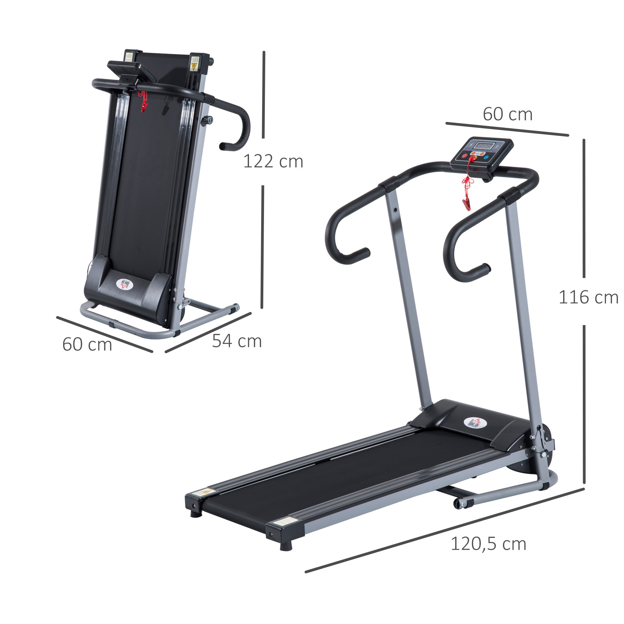 - MEDIDAS TOTAIS: 122x62,5x119 cm (CxLxA); Medidas dobradas: 62x62,5x119 cm (CxLxA). Capacidade máxima de carga: 110 kg Você quer fazer exercícios em casa? Esta esteira elétrica HOMCOM é a solução ideal! Possui tela LCD com 3 programas predefinidos para um treino mais variado, e você pode controlar as calorias queimadas, tempo, velocidade, etc. Velocidade de 1-10km / h. Feito de aço resistente e fita antiderrapante para evitar escorregões. Além disso, possui sistema de parada de emergência, para que a máquina pare imediatamente em caso de queda. É ideal!