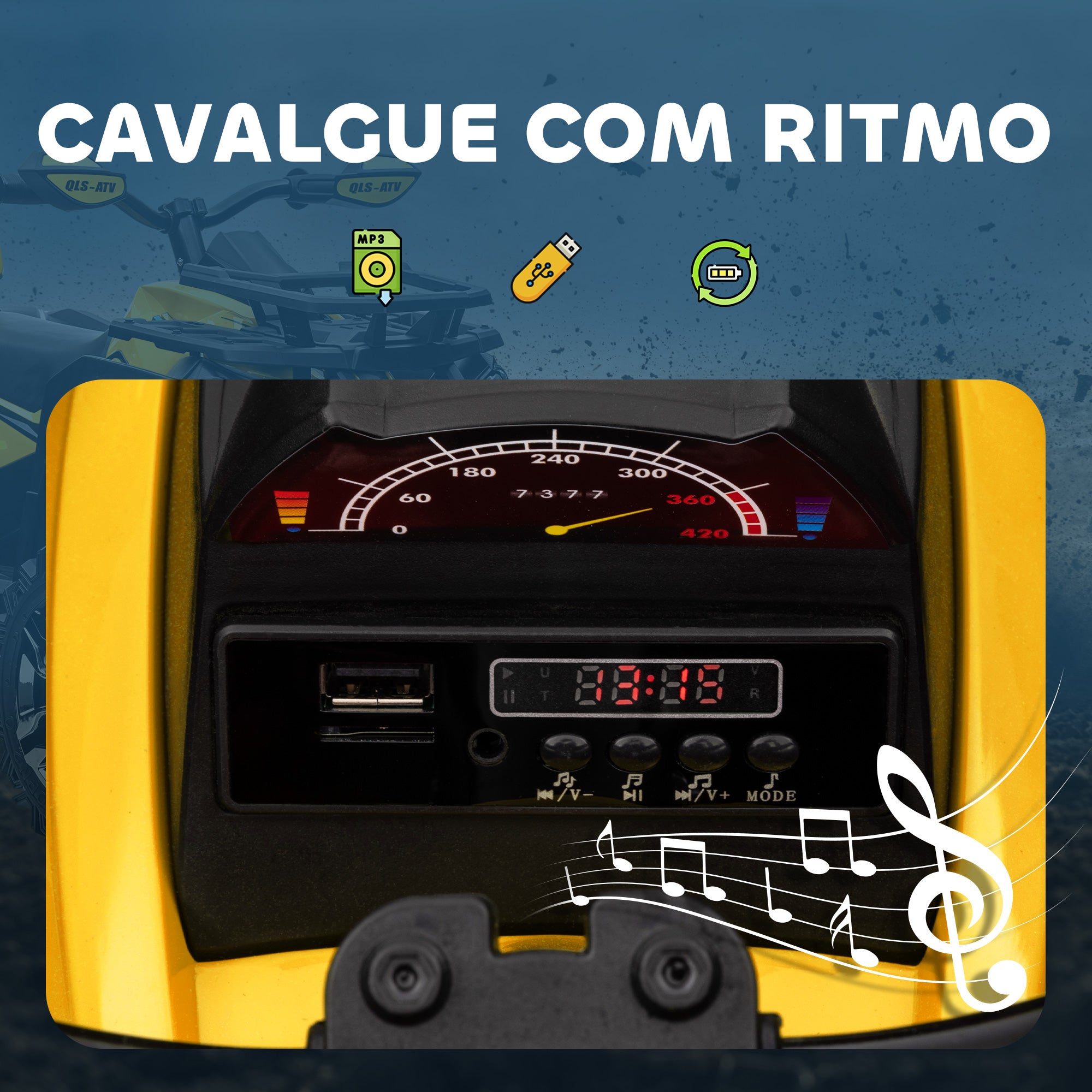 - CONEXÃO USB E MP3: Este veículo elétrico para crianças possui um painel com diferentes conexões (TF, USB e MP3) para que possa conectar dispositivos e seu filho desfrute de uma condução enquanto escuta sua música preferida