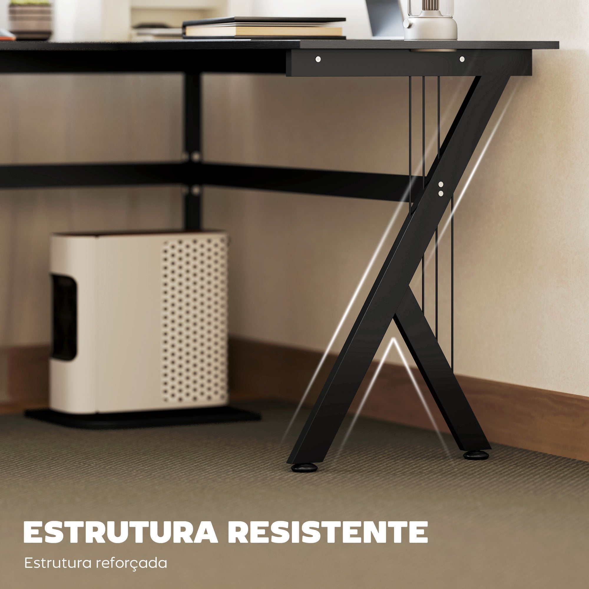 Secretária de PC Computador Secretária para Gabinete Móveis para Escritório- Cor: Preto - MDF E1 e Ferro Revestido de Pó - 155 x 130 x 76 cm