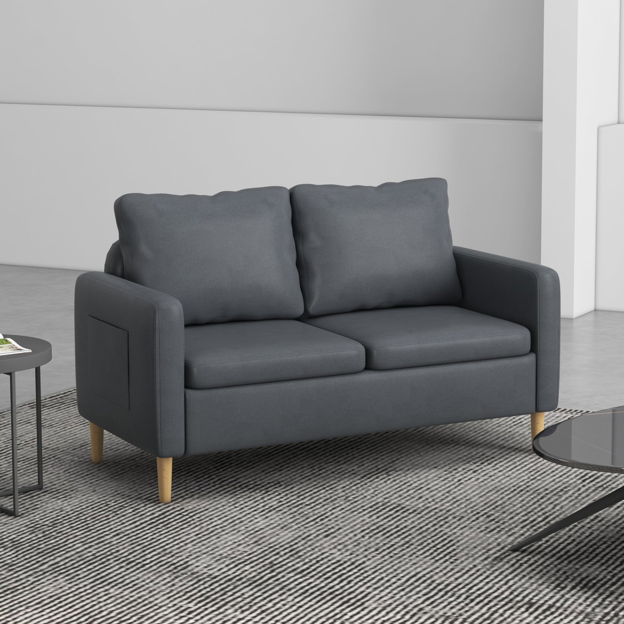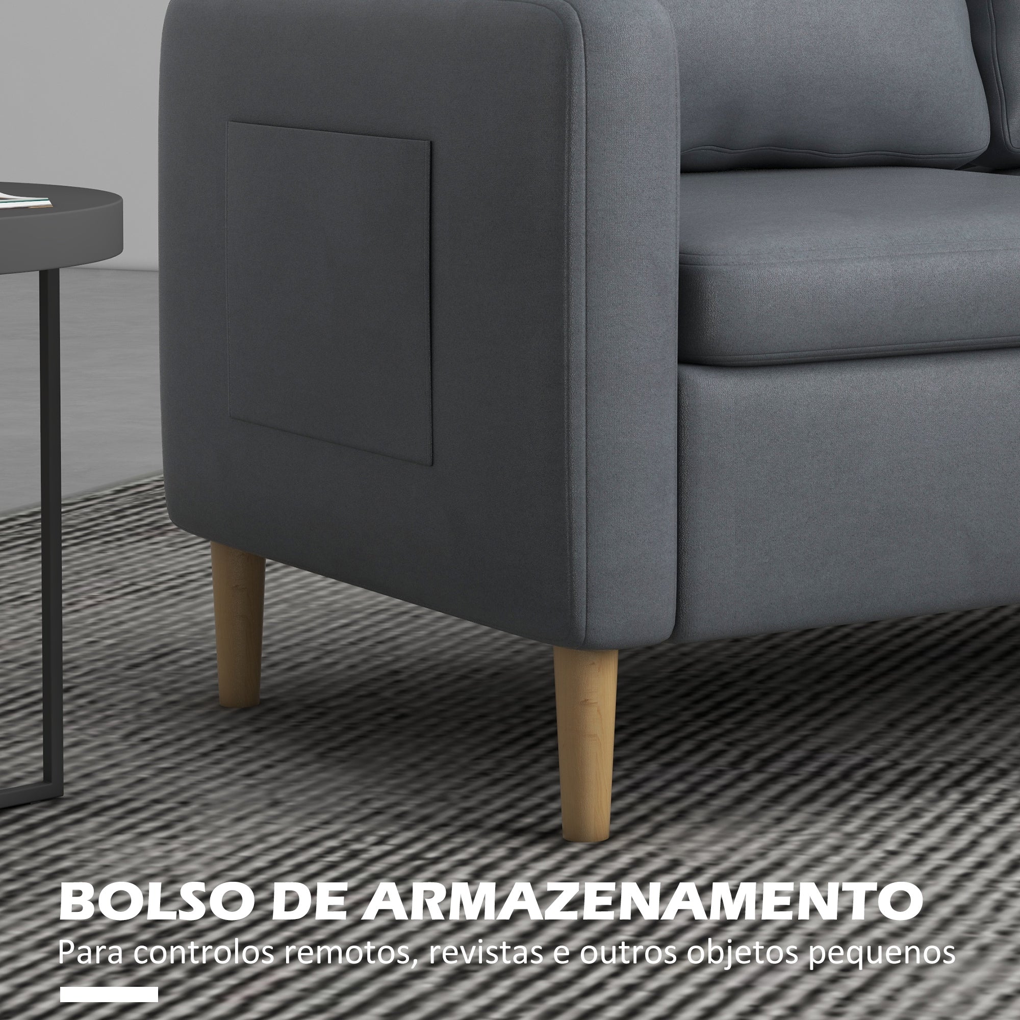 Sofá de 2 Lugares Sofá Moderno Estofado em Poliéster com 2 Bolsos Laterais Apoio para os braços e Pés de Madeira para Sala de Estar Escritório Carga 200 kg 143x76x83 cm Cinza