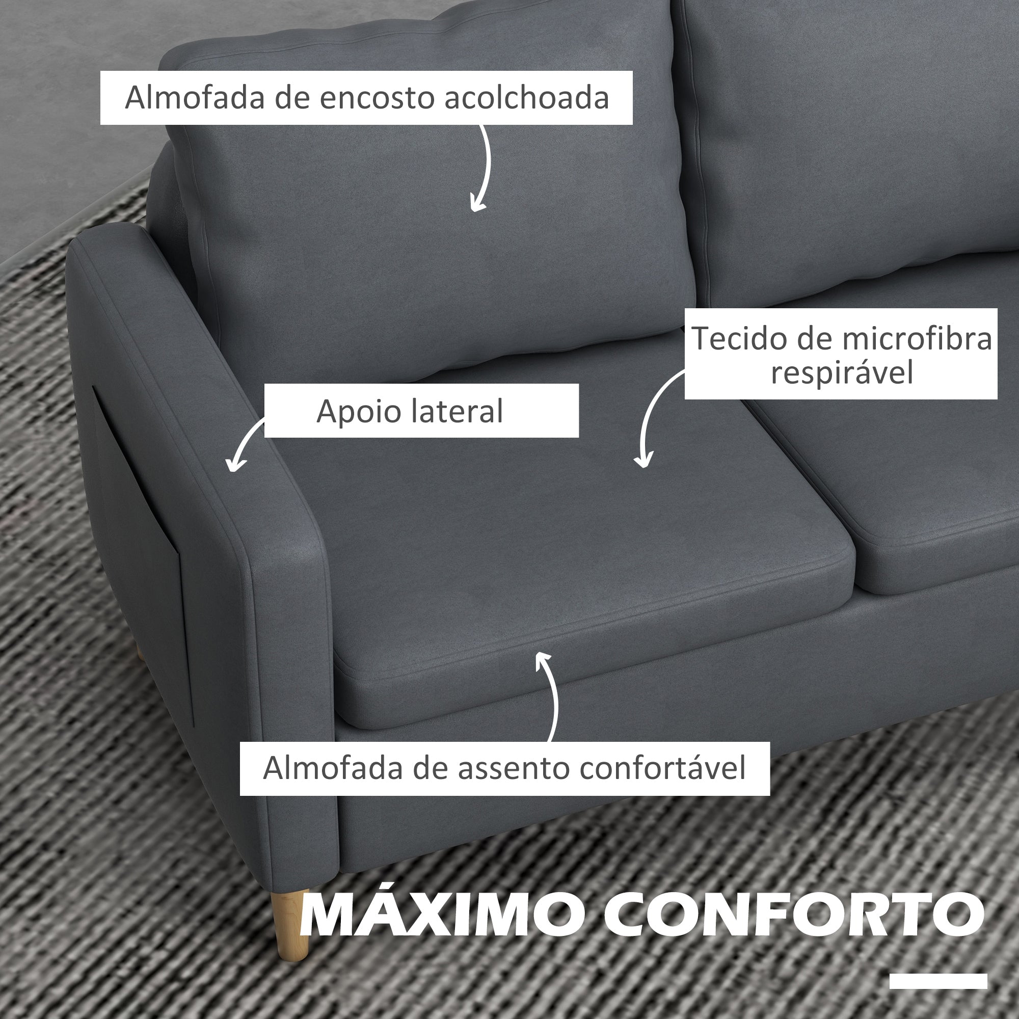 - MEDIDAS TOTAIS: 143x76x83 cm (CxLxA). Medidas do assento: 127x50x46 cm (CxLxA). Capacidade máxima de peso: 200 kg. Requer montagem Está a procurar um sofá compacto e confortável? Este sofá de 2 lugares da HOMCOM é ideal. O estofado microfibra suave, junto com o acolchoado de alta densidade, oferece um espaço confortável e perfeito para uma noite de cinema, para relaxar depois do trabalho ou para se aconchegar enquanto lê um livro. Além disso, a combinação da cor cinza com os pés de madeira acrescentará um toque de elegância a onde o coloque. O que você está a esperar?