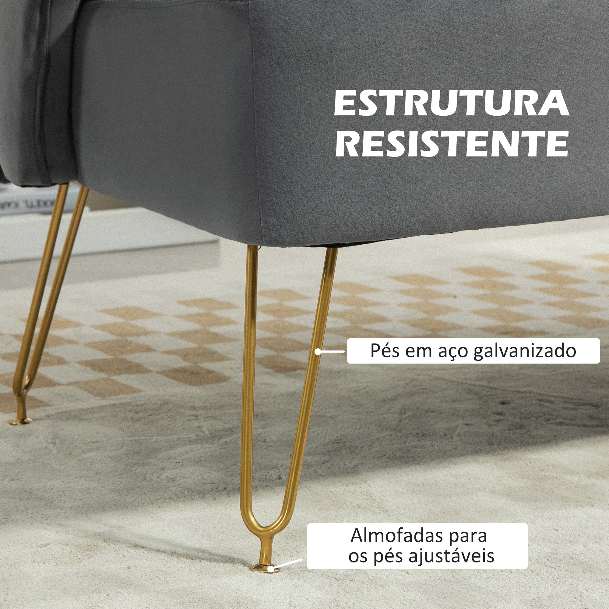 - ESTRUTURA RESISTENTE: Com quatro pernas de aço galvanizado e uma estrutura de placas multicamadas, este sofá de dois lugares é capaz de suportar até 240 kg. Também possui pernas ajustáveis para maior estabilidade