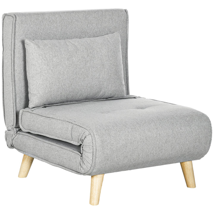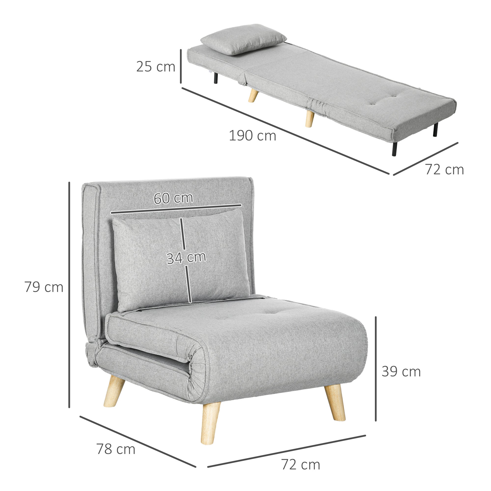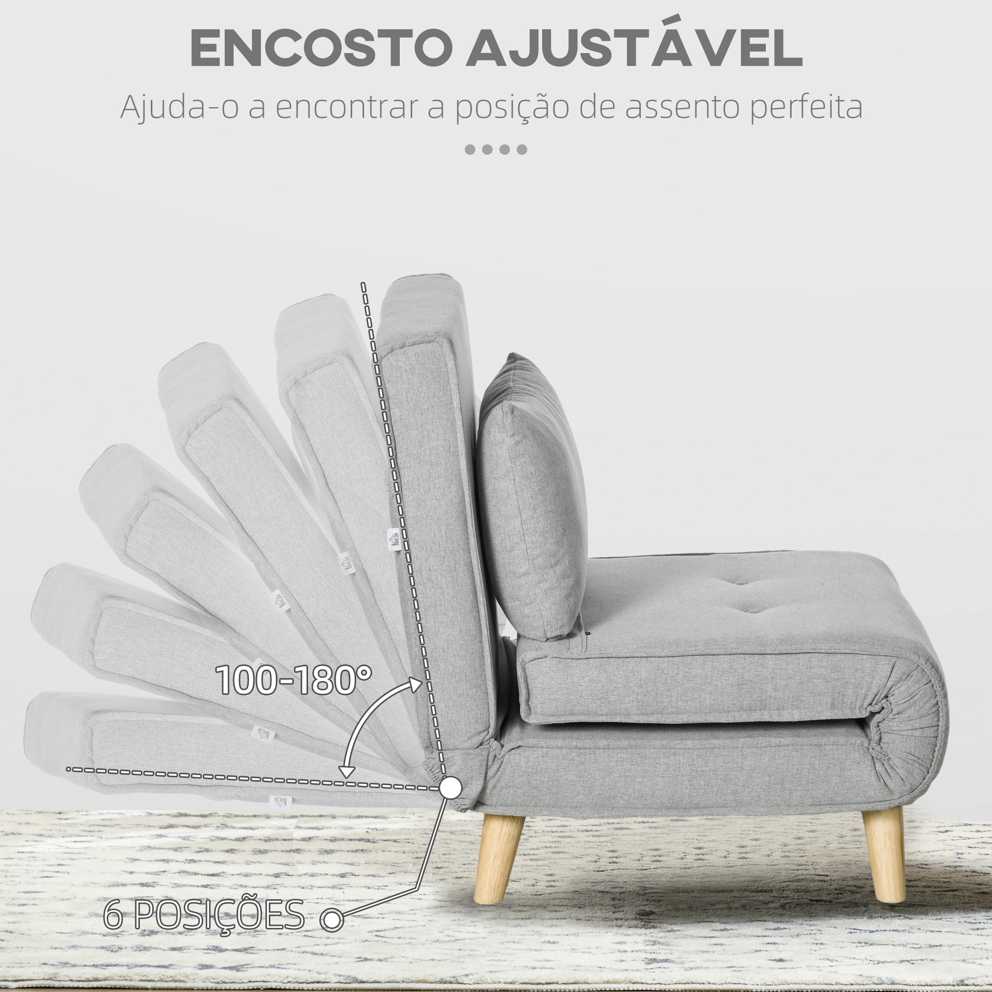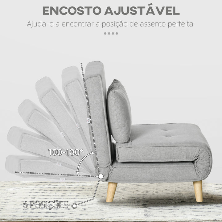 Poltrona 2 em 1 Sofá Cama Individual Dobrável com Encosto Ajustável e Almofada para Sala de Estar Dormitório Escritório Carga 150 kg 72x78x79 cm Cinza