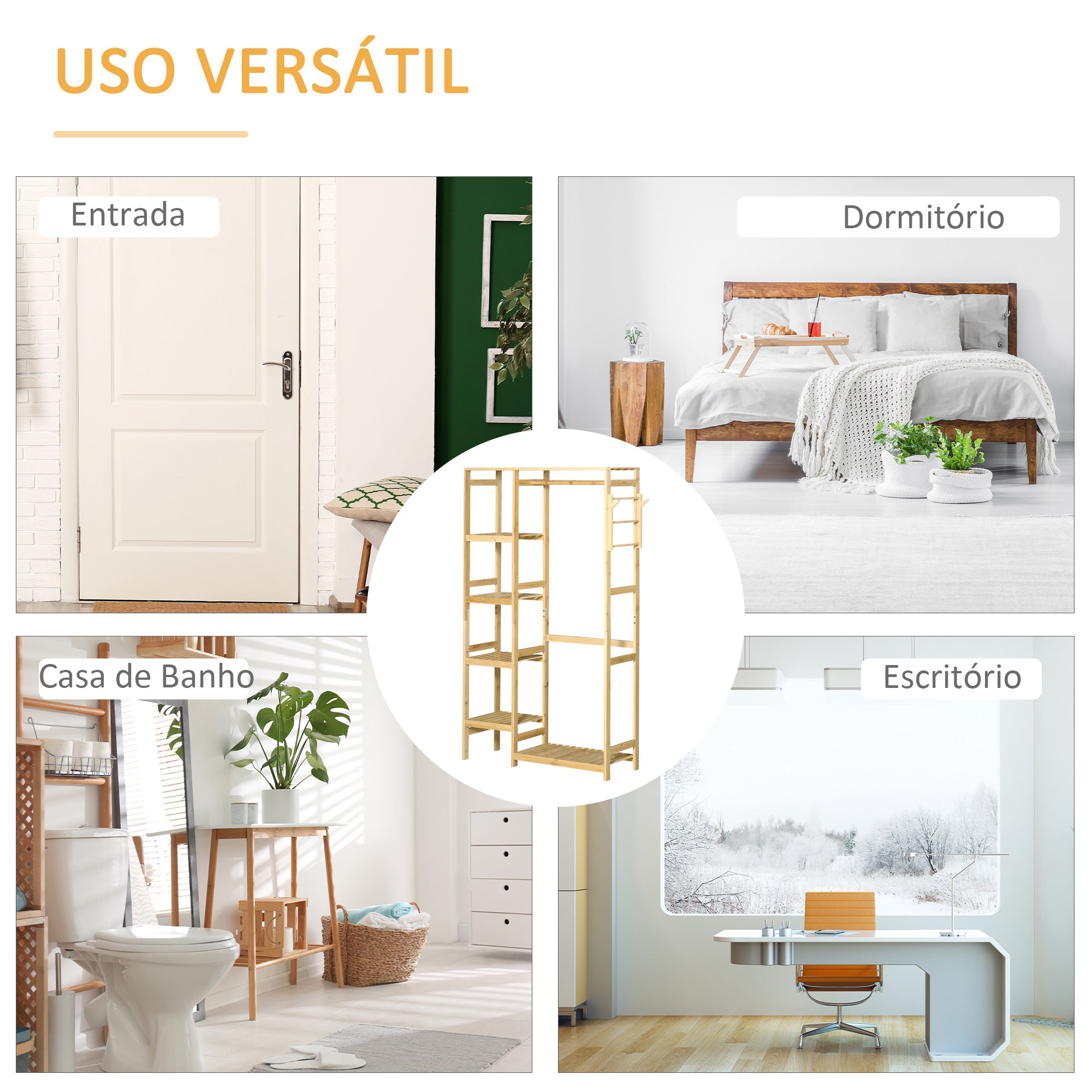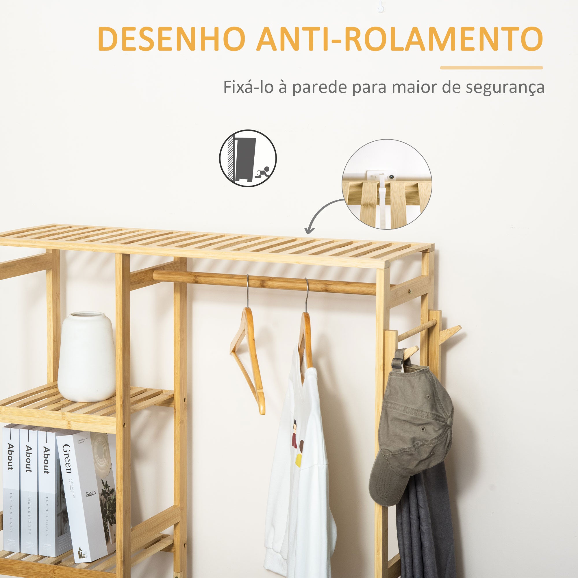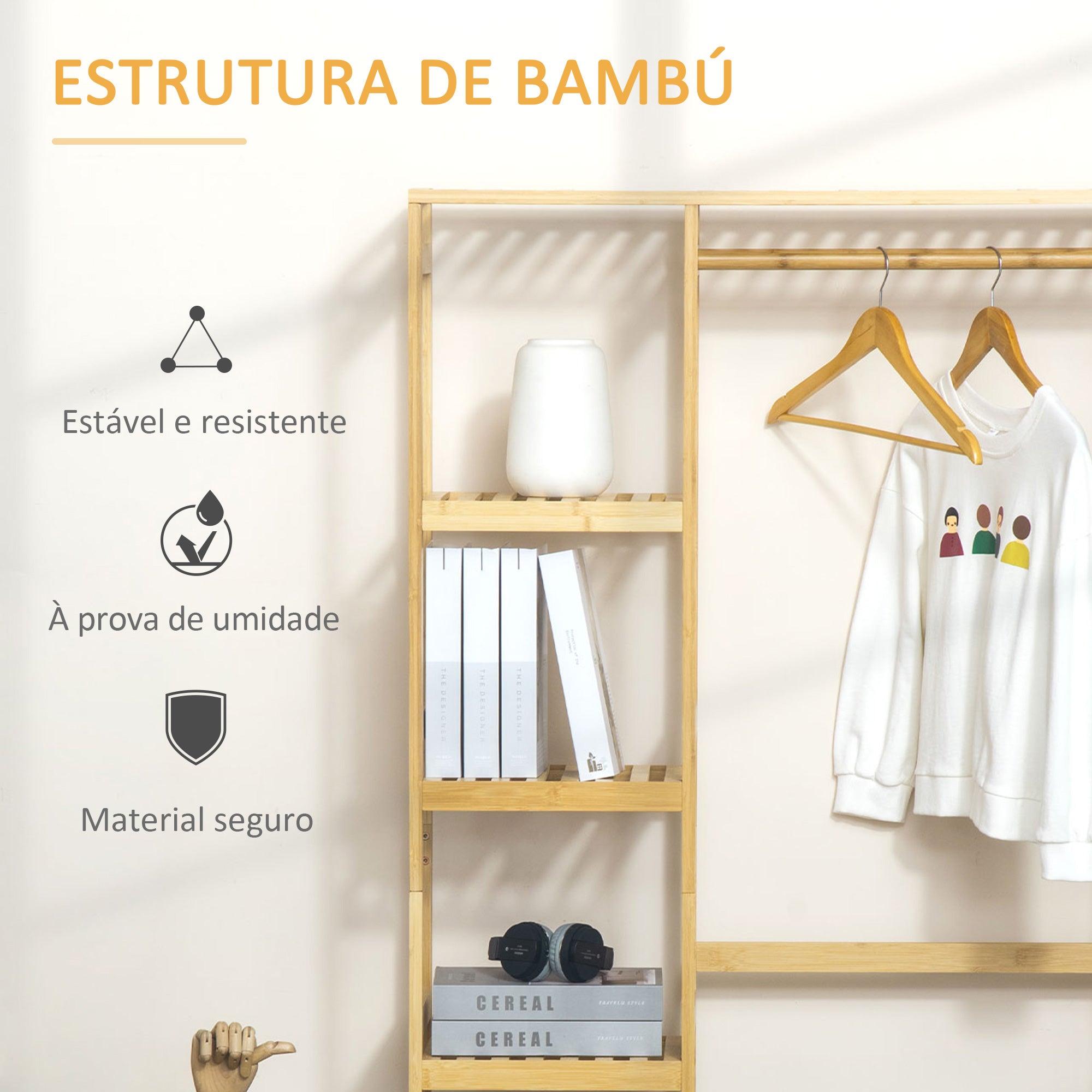 - lhe encontrar um espaço para tudo. A estrutura de madeira de bambu é resistente e possui um dispositivo anti