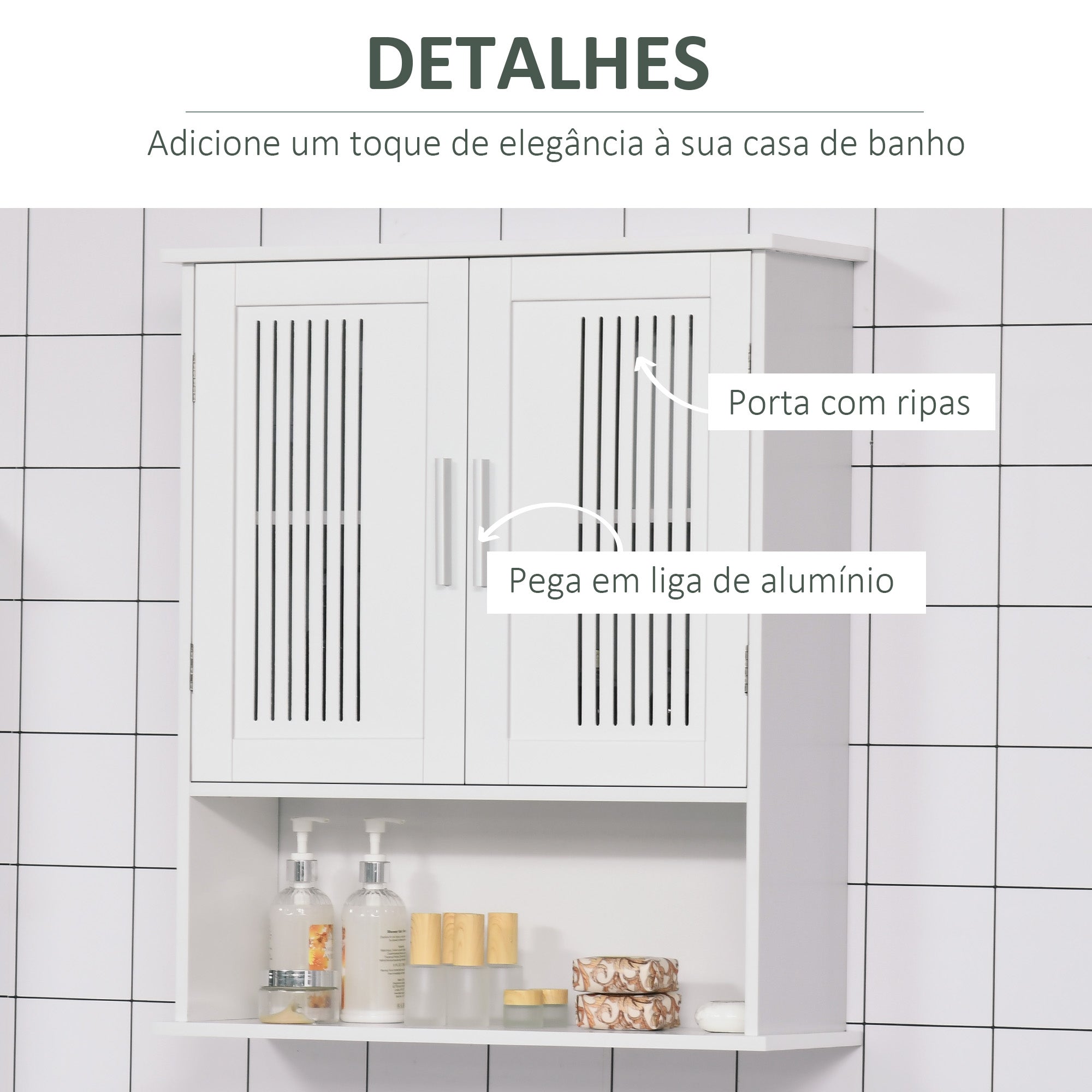 Armário de Parede para Casa de Banho Móvel Casa de Banho de Parede com Armazenamento 2 Portas em Ripas Prateleira Ajustável e Compartimento 60x20x70 cm Branco