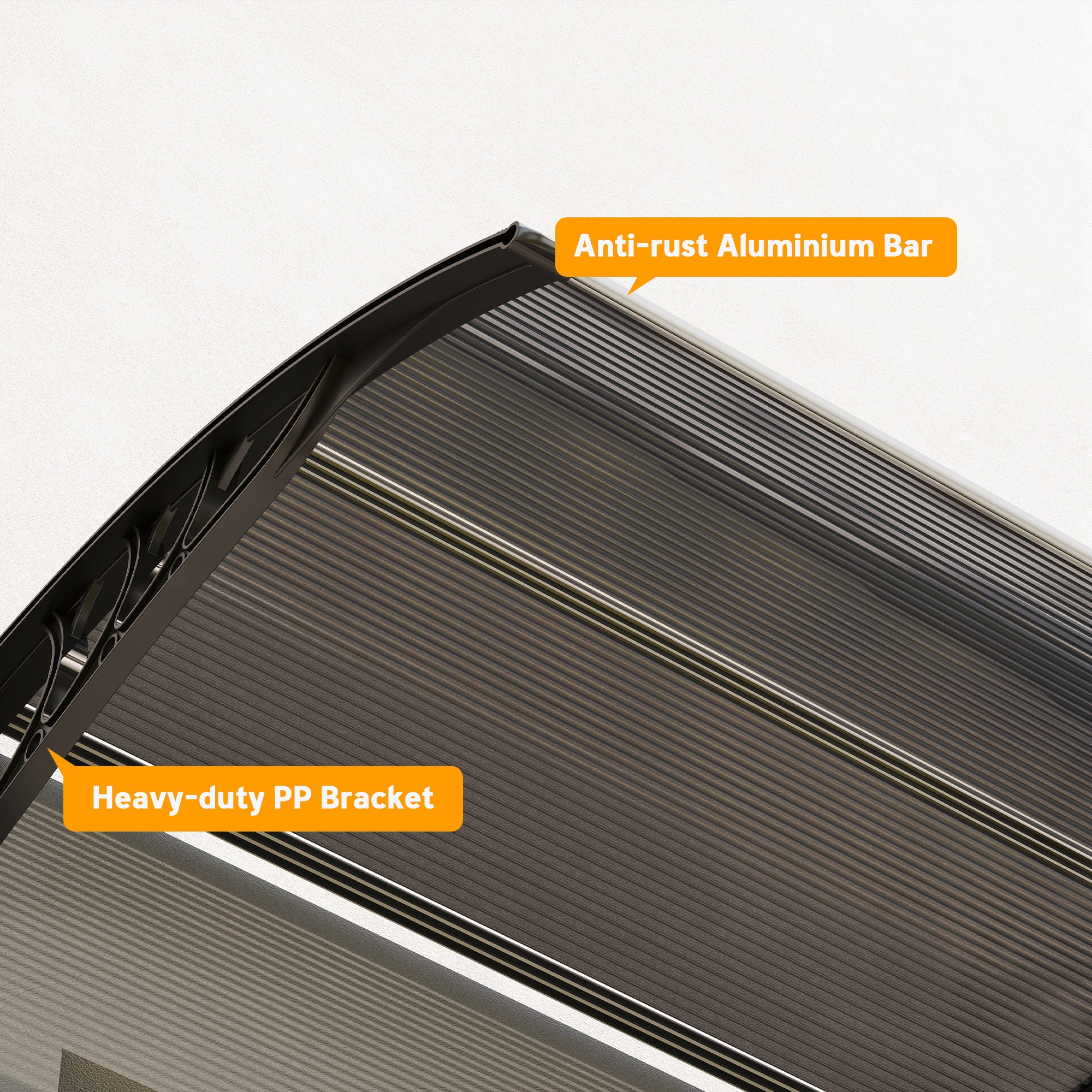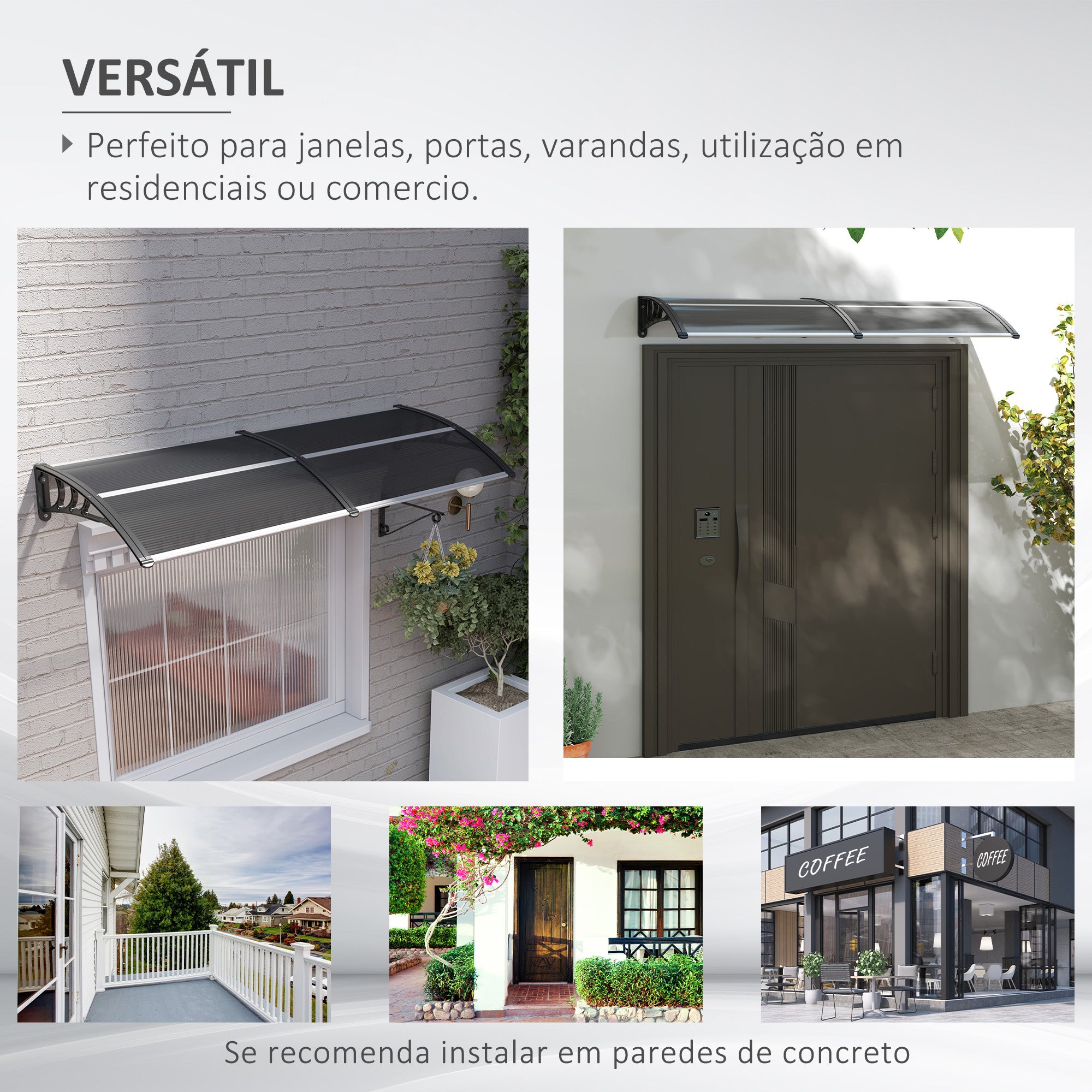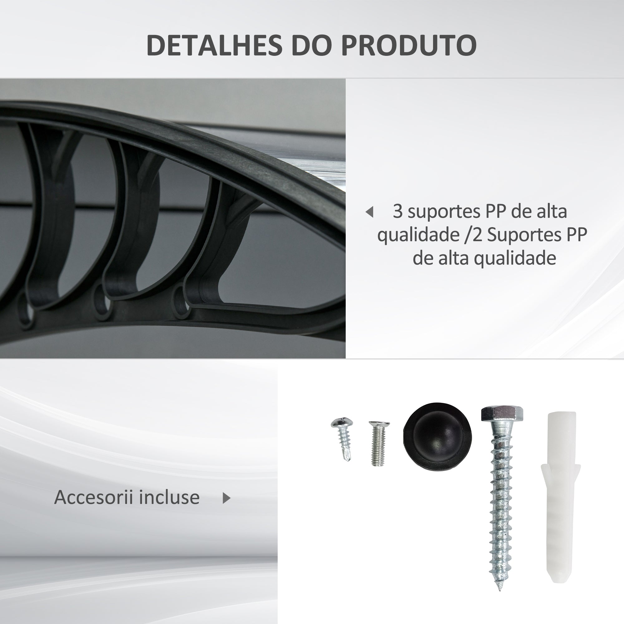 • 1 x Manual de instruções Proteja as suas portas e janelas de qualquer condição climática com esta marquise dupla e transparente. O seu desenho curvado bloqueia eficazmente os raios UV e as chuvas leves. Fácil de instalar em qualquer parede, é ideal para uma vasta gama de entradas e janelas. Desfrute do exterior durante todo o ano, de forma simples e sem preocupações