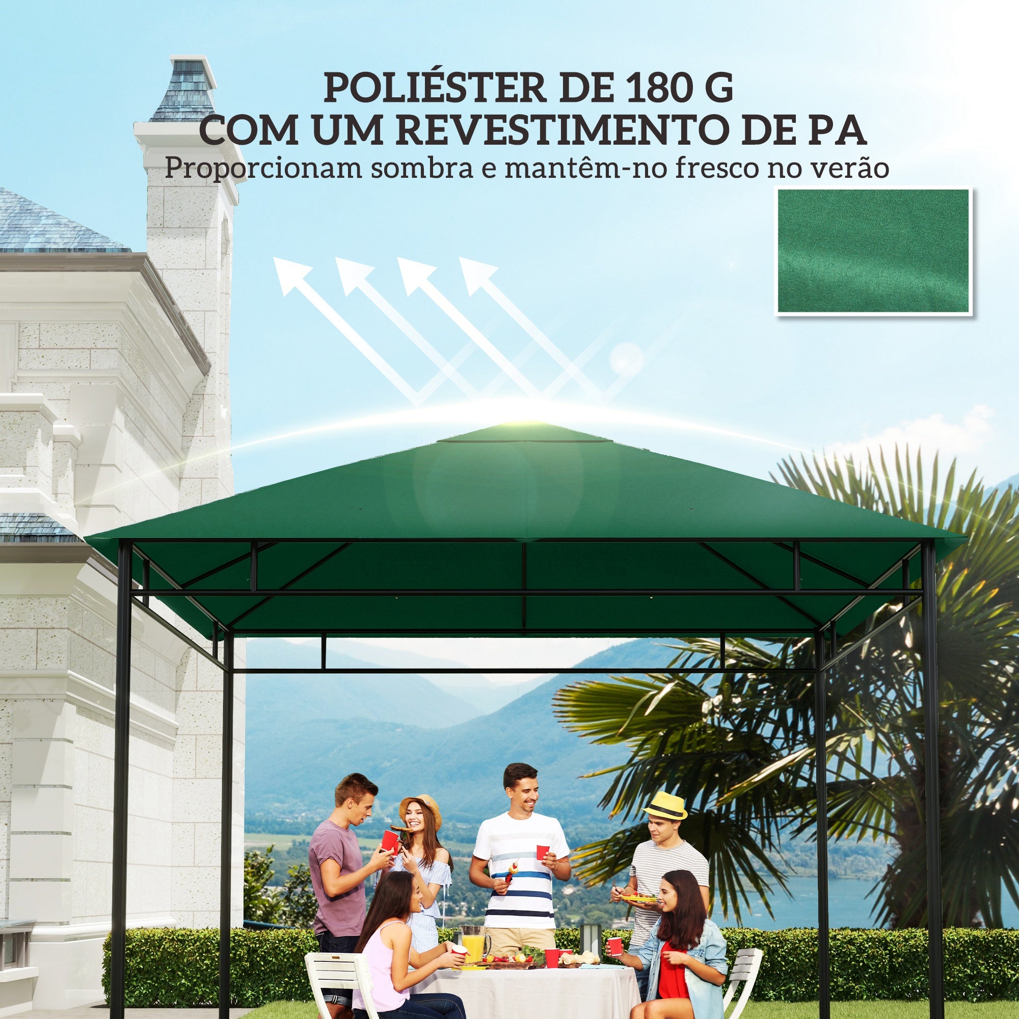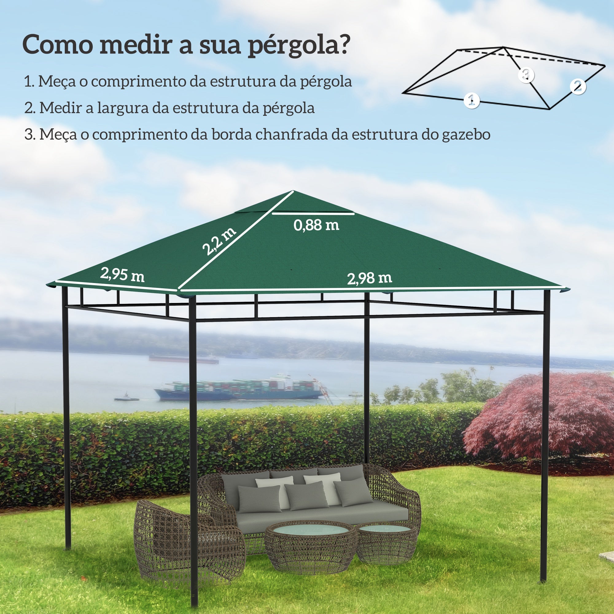 Cobertura de Substituição de 3x3m para Pérgola de Jardim com 8 Orifícios de Drenagem e Ventilação Verde