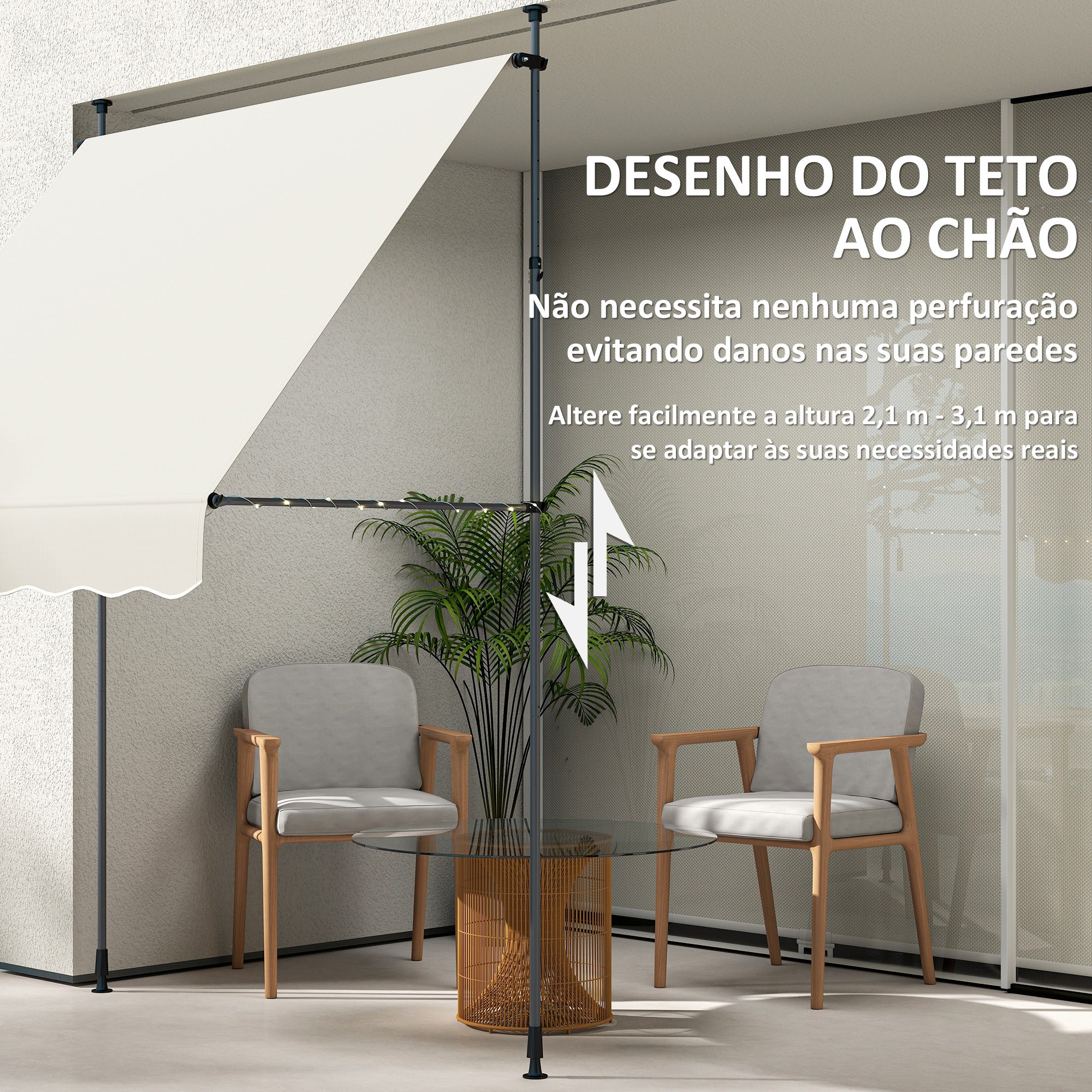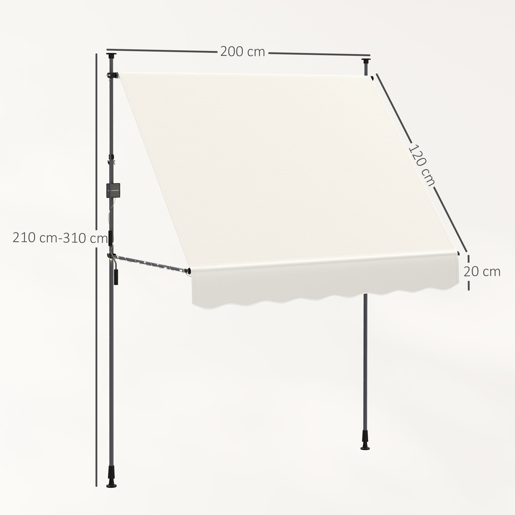 Toldo Manual Retráctil 2x1,2 m Toldo Exterior Enrolável Altura Ajustável com Manivela 210-310 cm Proteção UV30+ Sem Perfuração para Jardim Varanda Pátio Creme