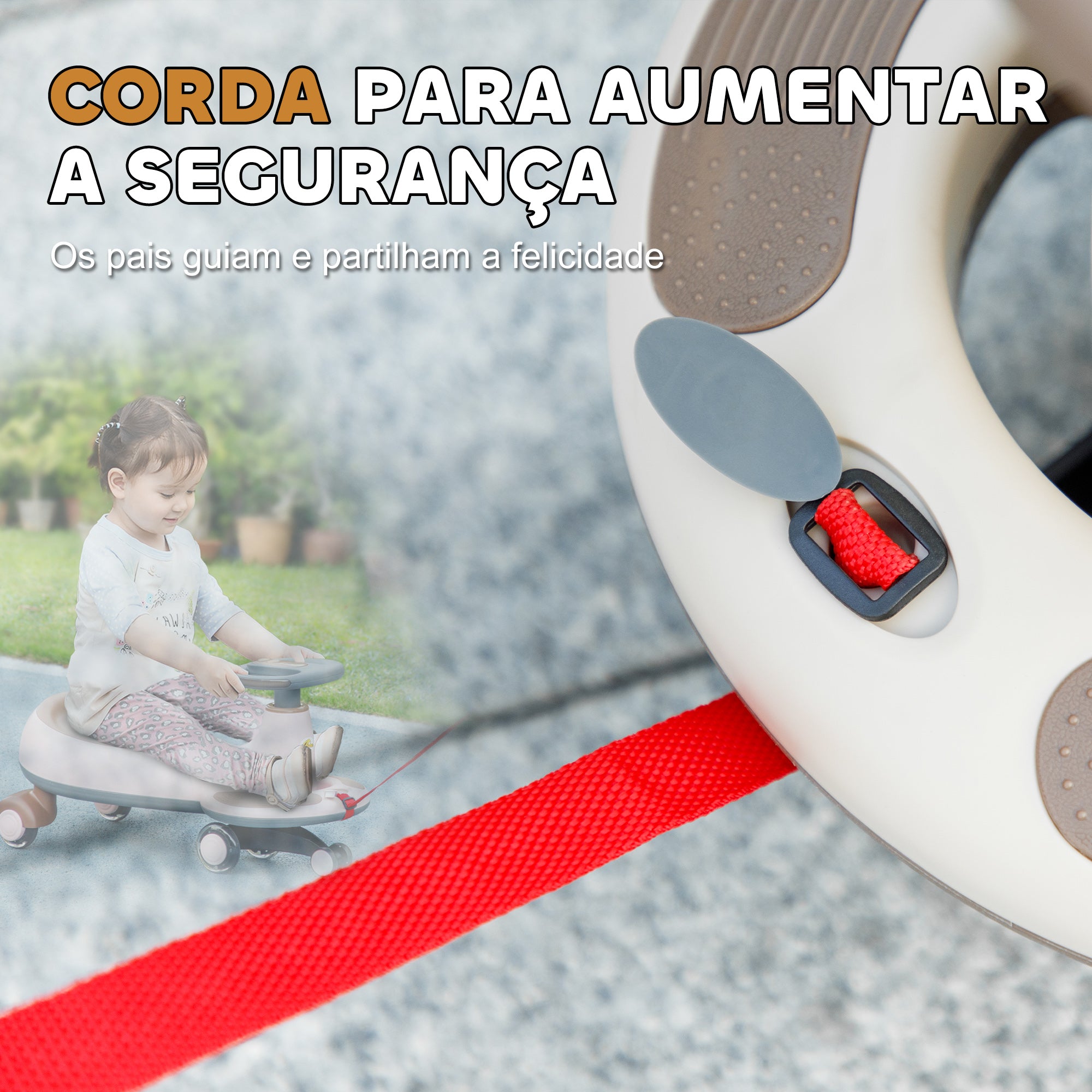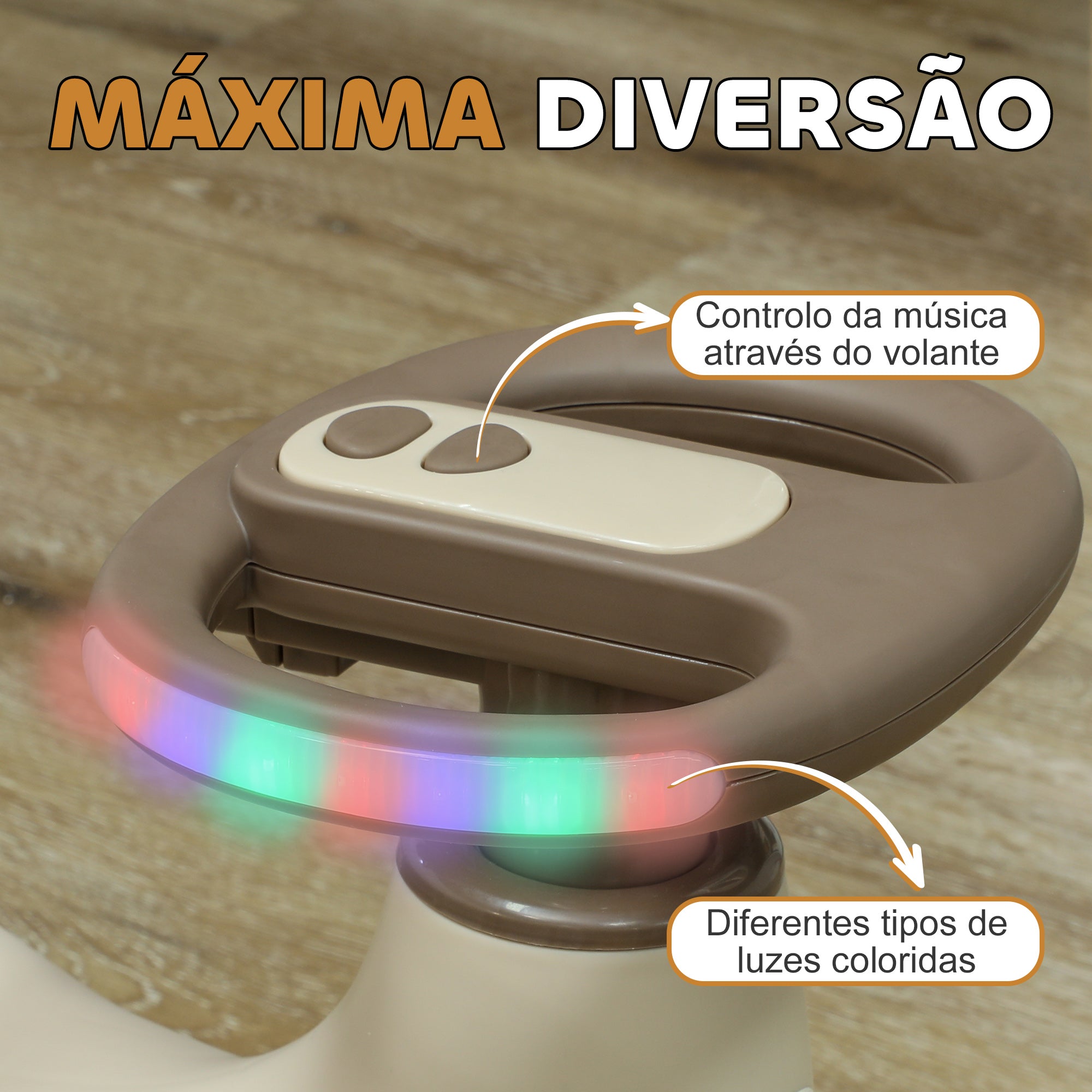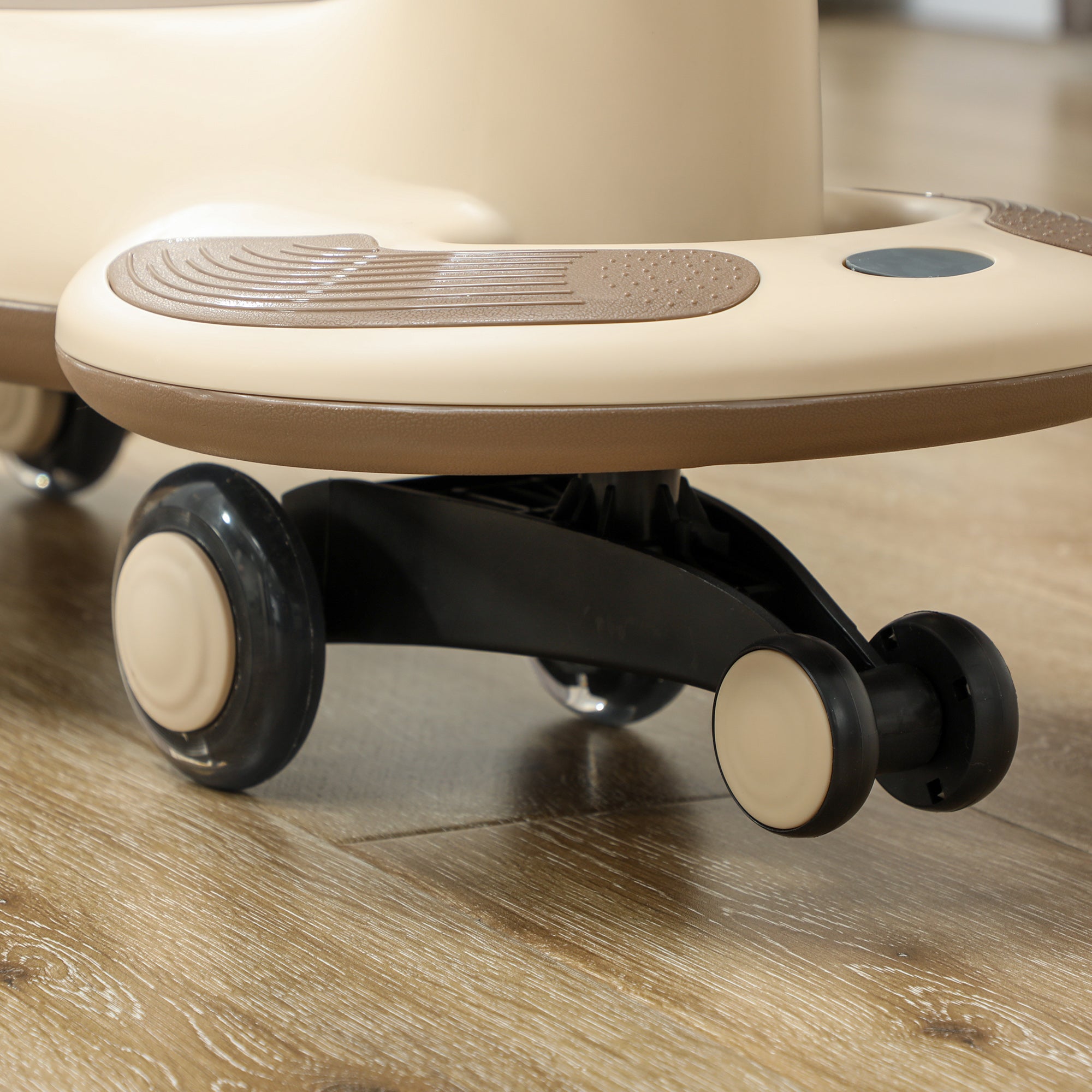 Carrinho Gira Gira para Crianças acima de 2 Anos Carrinho Wiggle com Guiador para Pais Música Luz e Espaço de Arrumação 69x31x69 cm Cáqui