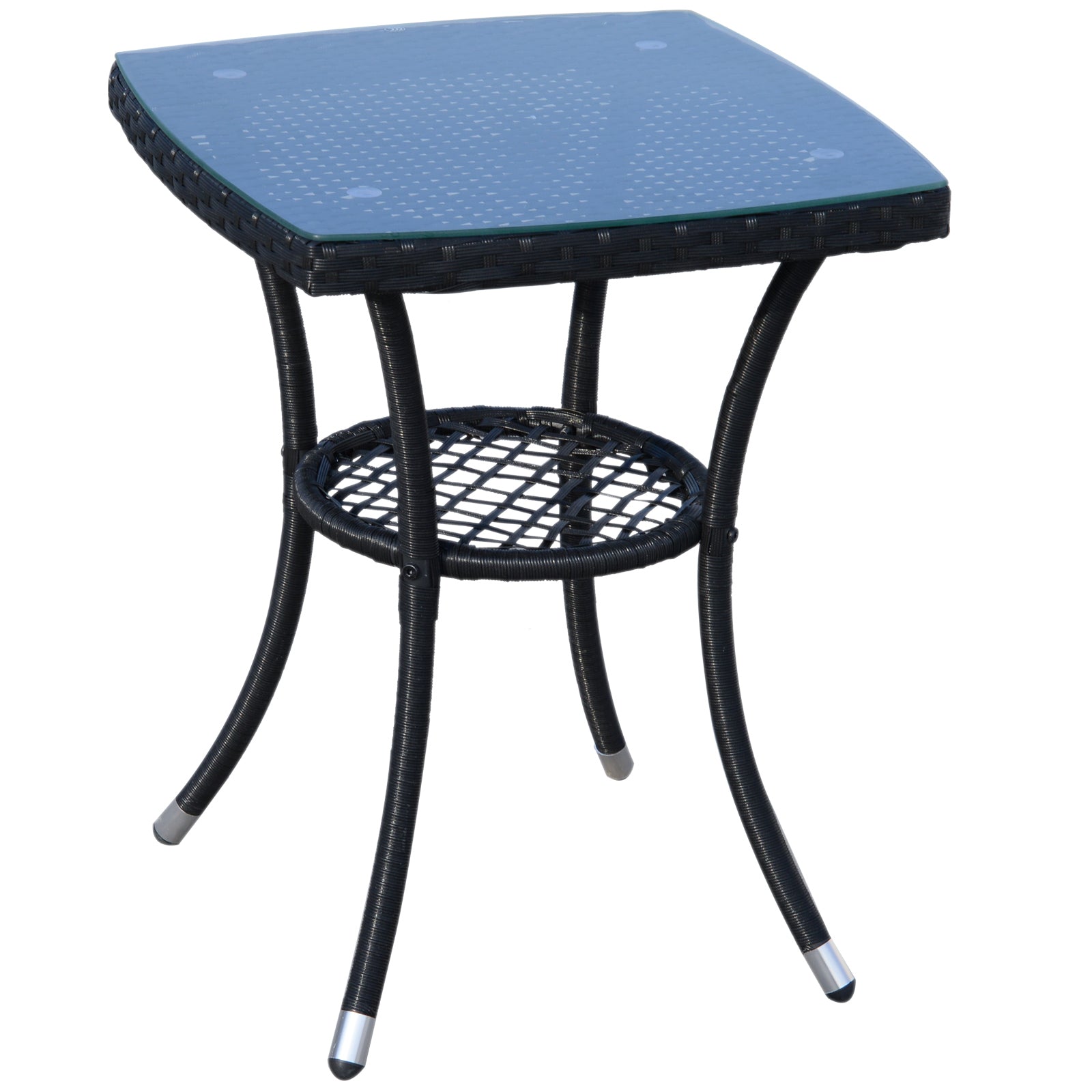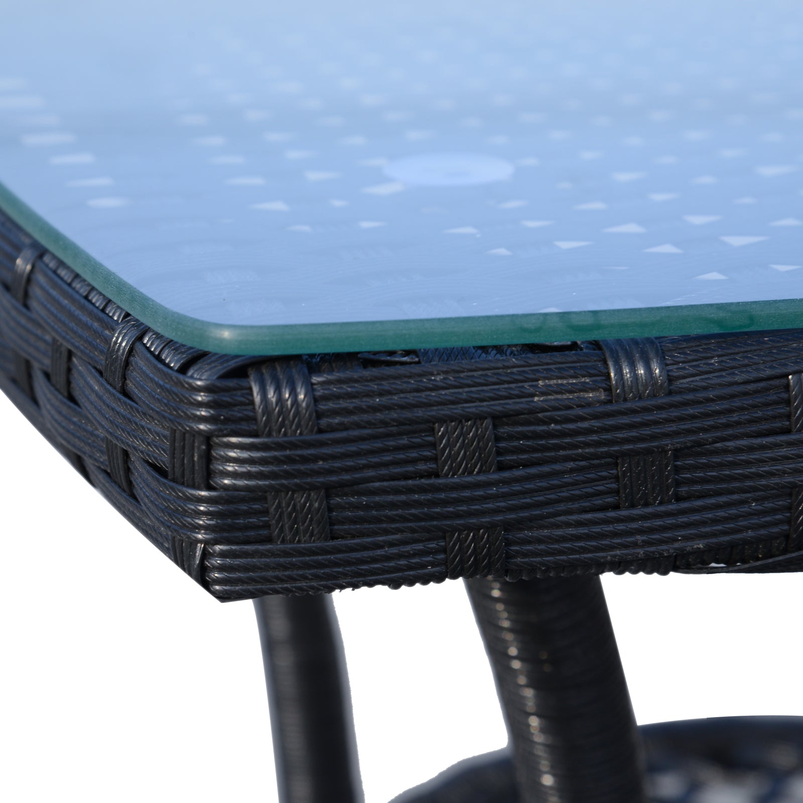 • MESA DE VIDRO TEMPERADO: Uma mesa combinada com tampo de vidro temperado e prateleira inferior, fácil de limpar e manter, adiciona uma aparência sofisticada às refeições ao ar livre.