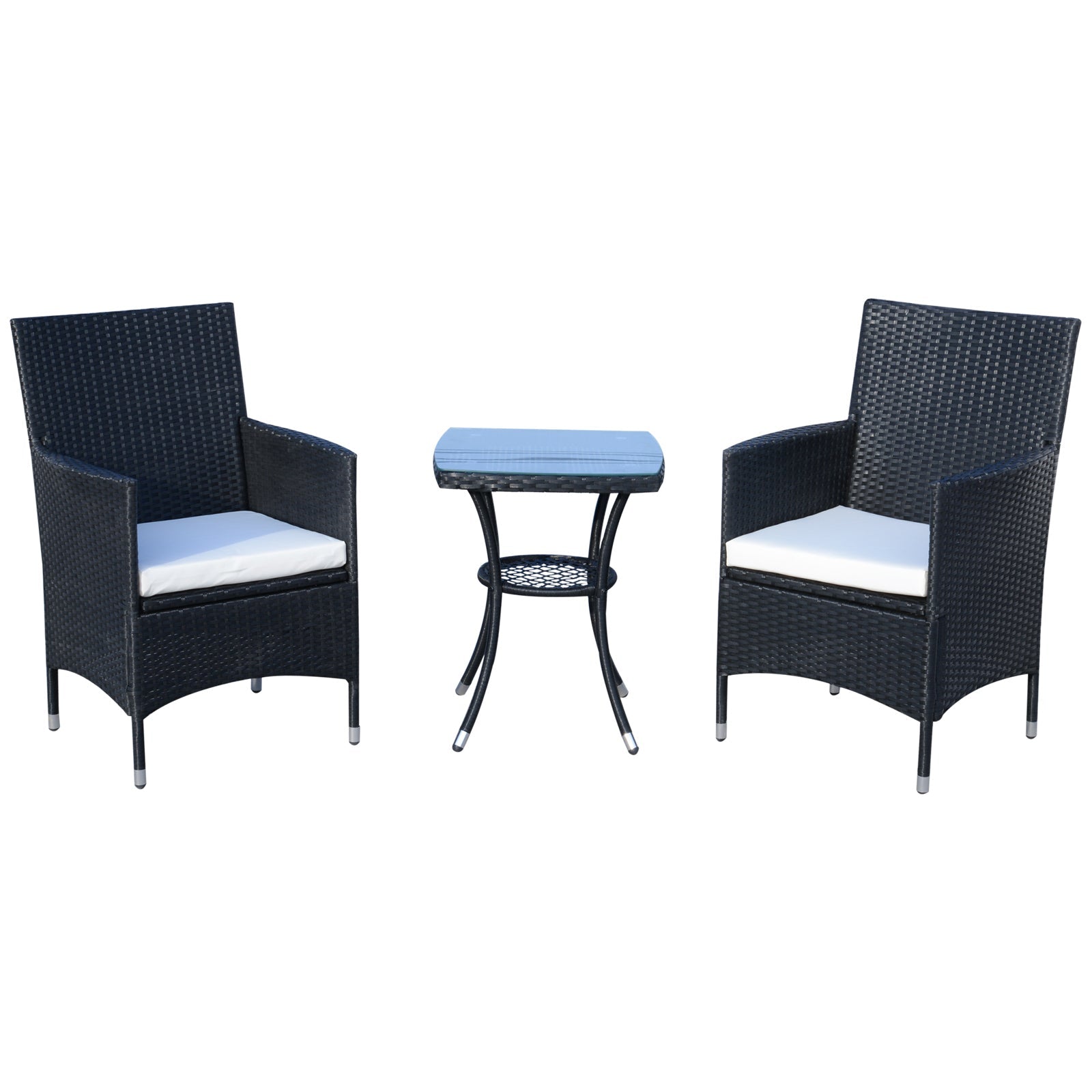 • MEDIDAS: Medida da cadeira: 60x58.5x89.5 cm(CxLxA); Medida da mesa de café: 48x48x 60 cm(CxLxA); Capacidade de peso da cadeira: 120kg; Capacidade de peso da mesa de café: 50kg O conjunto de móveis para exterior de 3 peças de Outsunny , que parece contemporâneo, oferece um lounge ao ar livre confortável e deslumbrante. Este conjunto de móveis permitirá que você e sua família se sentem, relaxem e aproveitem seu excelente tempo ao ar livre. É adequado para beira de piscina, jardim ou pátio. Apresentando uma estrutura de metal galvanizado para uso durável, este conjunto de pátio pode ser usado muitos anos.
