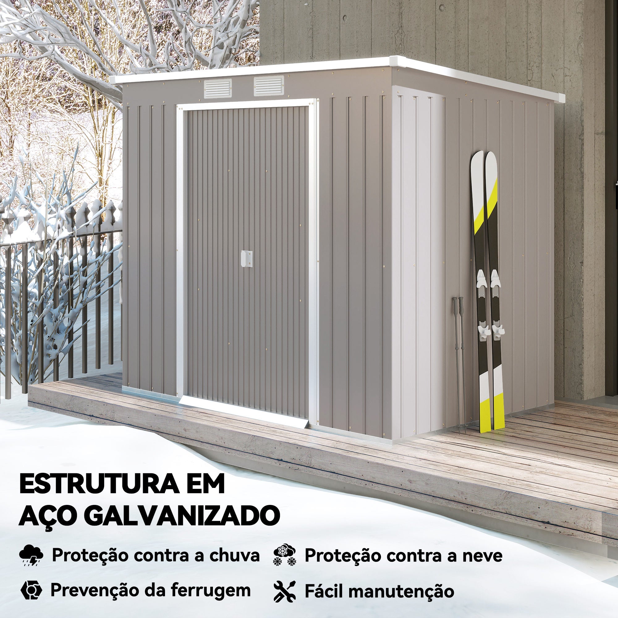 - Amplo espaço interior para guardar materiais e ferramentas de jardinagem, acessórios para a piscina, entre outros Fabricado em aço galvanizado resistente e ideal para uma utilização prolongada O telhado inclinado evita o acúmulo de água da chuva Porta de correr prática de fácil acesso 2 aberturas para promover o fluxo de ar Desenho bloqueável para que você possa adicionar um cadeado (não incluído) Requer montagem