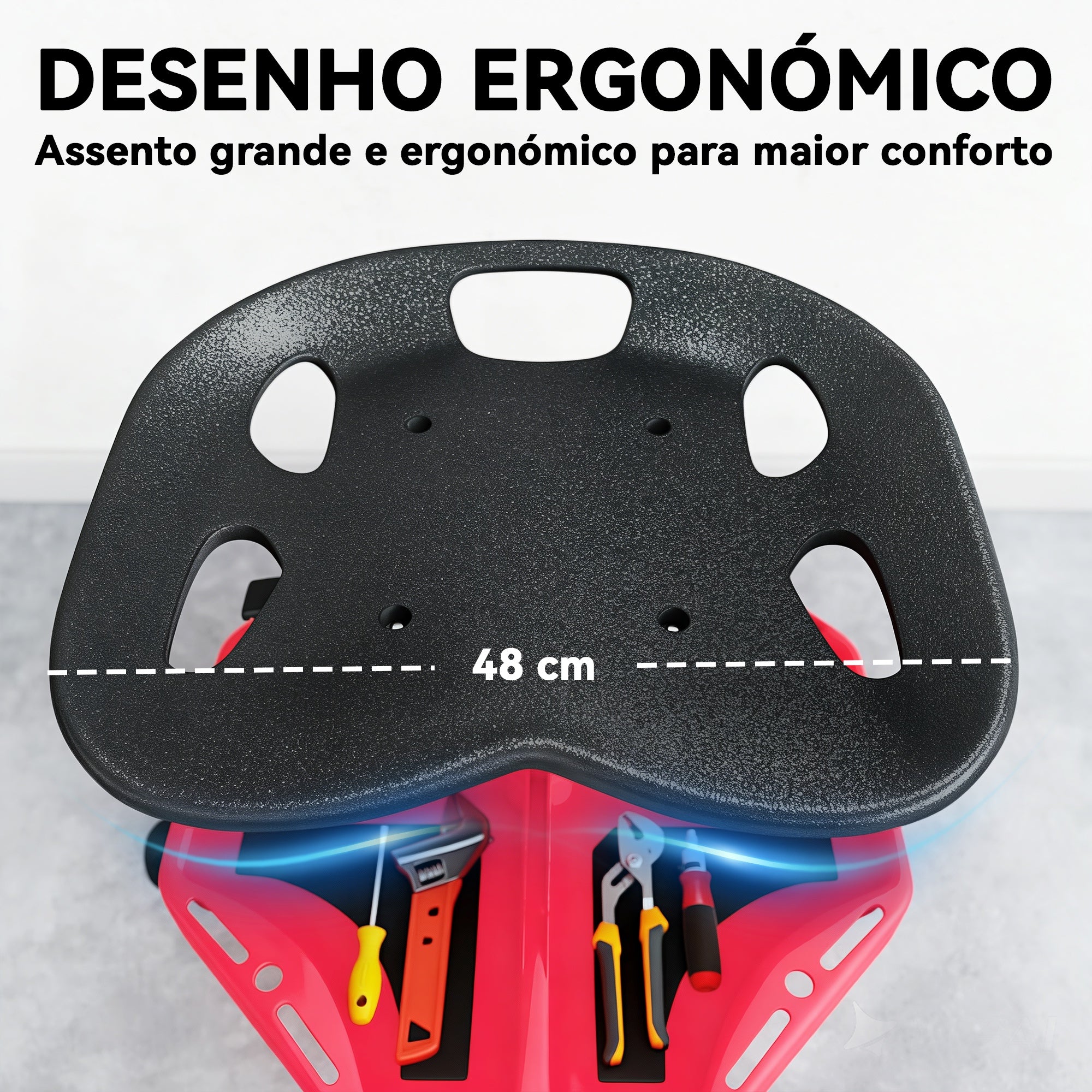 - Cor: Vermelho, preto Material: PP, TPR Medidas totais: 55x55x52–59,5 cm (CxLxA) Medidas do assento: 48x40 cm (CxL) Medidas das rodas: 7,5 cm Medidas da bandeja: 55x55 cm (CxL) Carga máxima: 135 kg Referência: C20·089V00RD O pacote inclui: ? 1 x Banco de mecânico; ? 1 x Manual de instruções