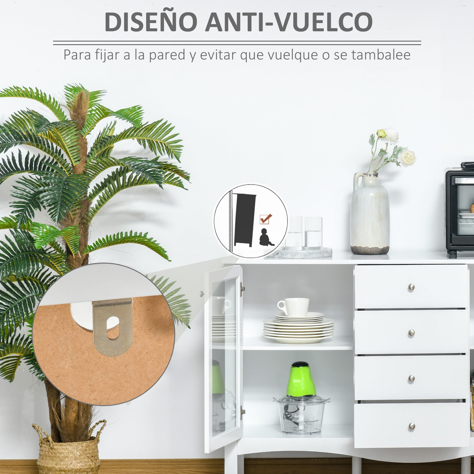 - APARADOR MULTIFUNCIONAL: Graças ao seu bonito desenho e estilo, este móvel também se pode utilizar como buffet, armário de armazenamento ou inclusive como móvel de TV. Ideal para ter na cozinha, sala de estar ou em qualquer espaço que necessite um espaço extra de armazenamento