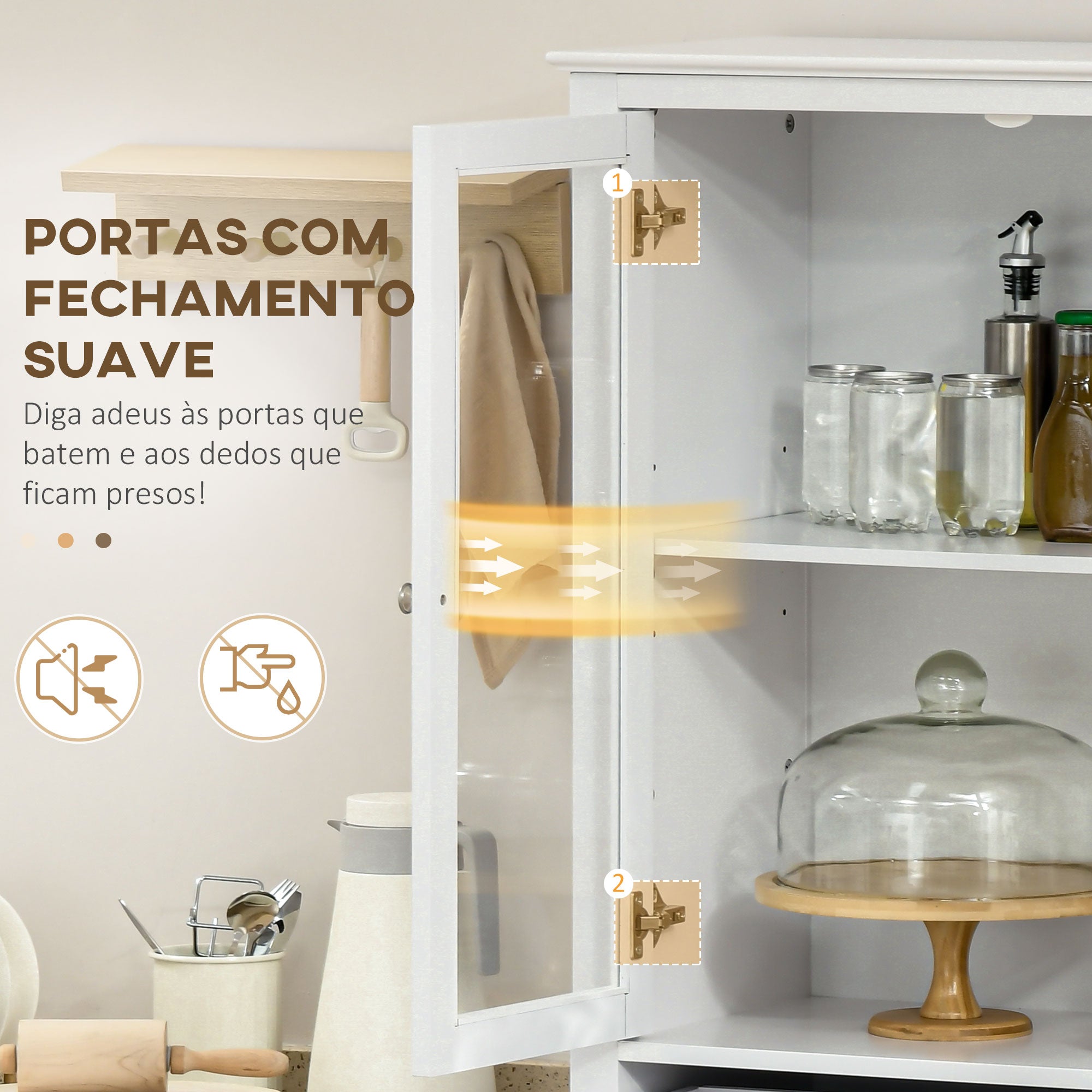 - Desenho moderno com linhas clean e portas de vidro transparente As quatro prateleiras e a gaveta oferecem muito espaço para guardar pratos, panelas, alimentos ou livros e objetos decorativos Duas prateleiras ajustáveis em altura permitem armazenar itens maiores sem ter que se preocupar se caberão Possui um sistema antitombo que pode ser fixada na parede para maior segurança Base elevada para facilitar a limpeza por baixo e proteger as peças da humidade do solo coloqueo em sua cozinha, sala de estar, sala de jantar ou escritório para aumentar o espaço de armazenamento Requer montagem