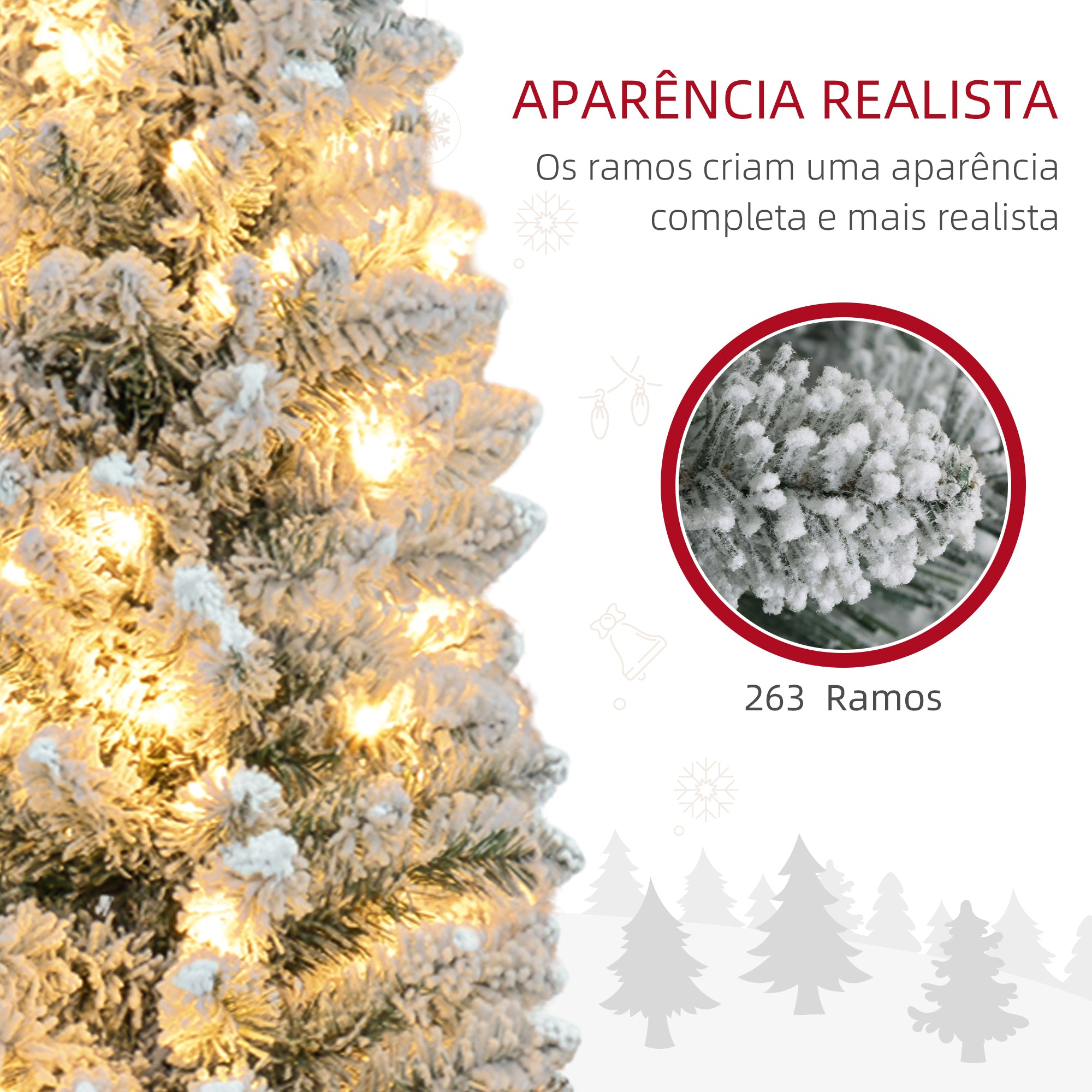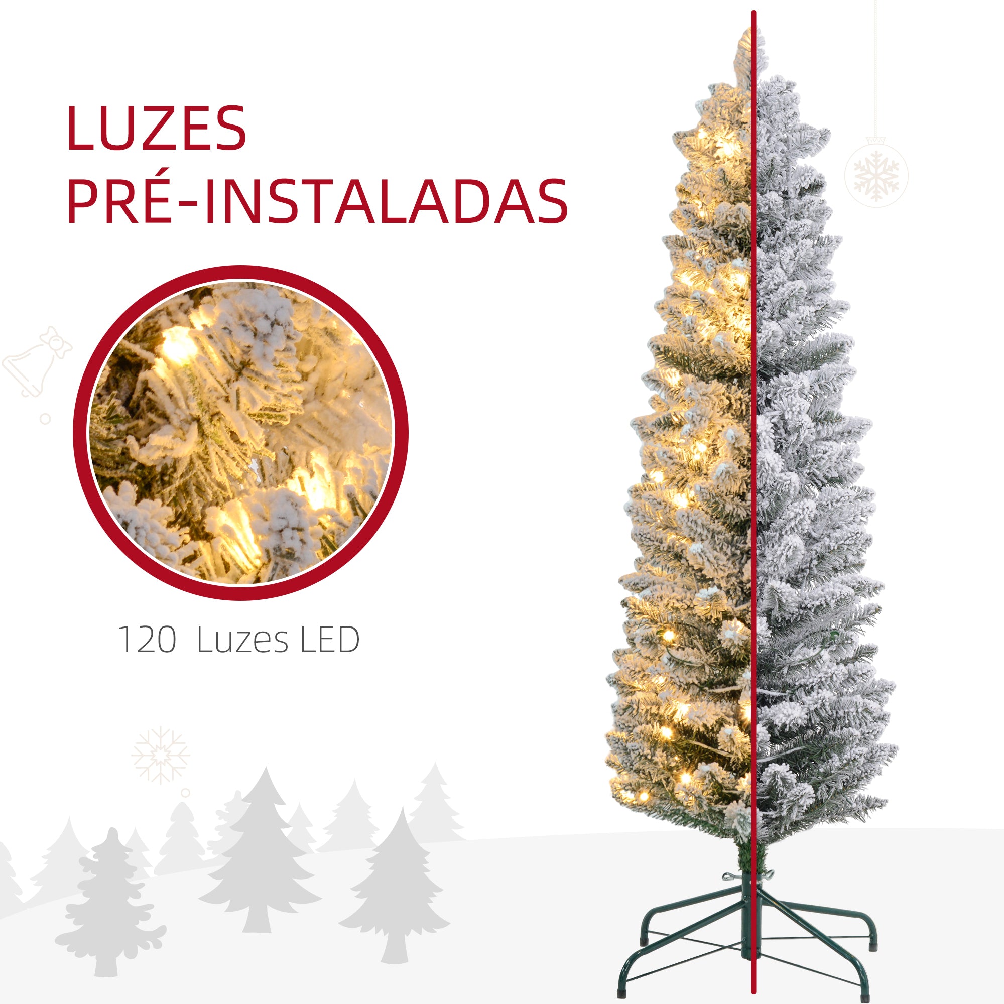 • MEDIDAS TOTAIS: Ø45x150 cm (DxA). Para obter uma aparência do mais realista, estende todas as pontas individualmente, demorará aproximandamente 10 minutos aproximadamente Crie uma atmosfera natalícia incrível com esta árvore de Natal slim da HOMCOM. Com seu aspecto nevado e 120 luzes LED, o seu Natal será verdadeiramente mágico. Graças ao seu formato slim, esta árvore de Natal encaixará perfeitamente em qualquer espaço. Com a beleza de um pinheiro natural e as luzes LED em tons cálidos, ela iluminará de maneira encantadora, tornando·se o ponto focal perfeito para suas celebrações festivas