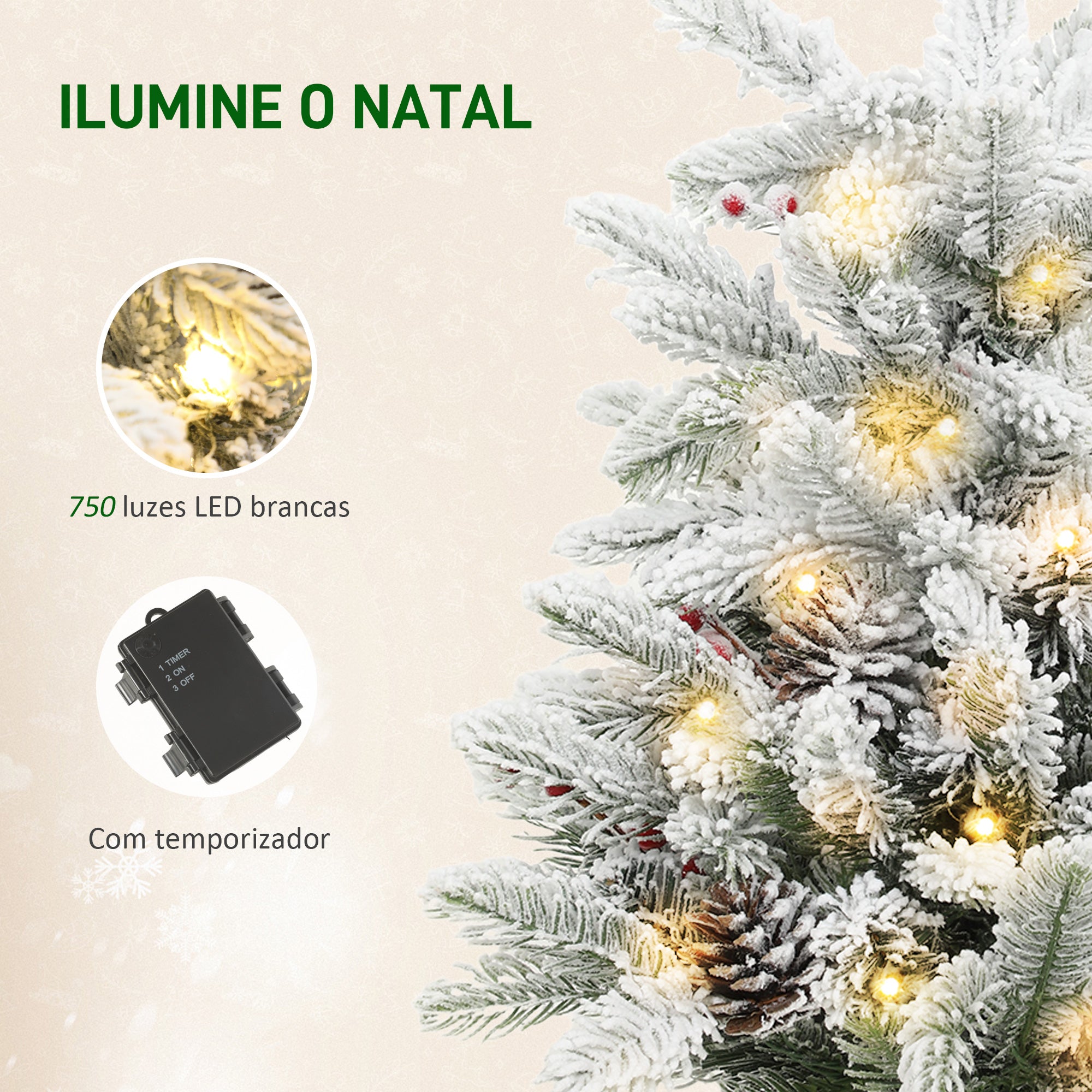 - RAMOS DENSOS COM EFEITO DE NEVE: Com 182 ramos cobertos de neve artificial e decorados com 6 pinhas e bagas, esta pequena árvore de Natal tem um aspeto cheio e realista, perfeita para criar um ambiente festivo e acolhedor