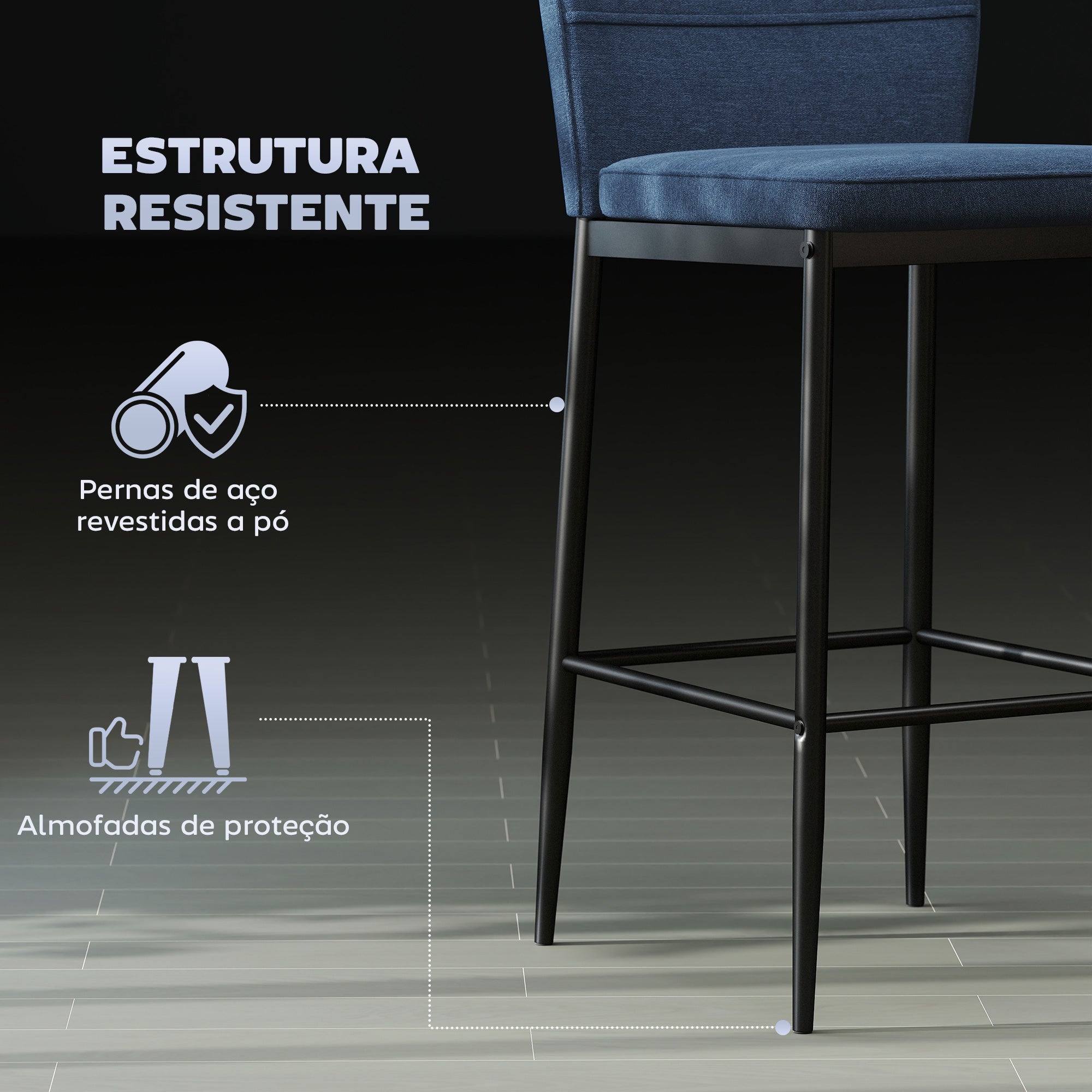 Conjunto de 2 Bancos de Bar Bancos Altos de Cozinha com Encosto e Apoio para os Pés Estofados em Veludo Estrutura de Aço Bancos Altos Modernos para Sala de Jantar Balcão 41x52x97 cm Azul