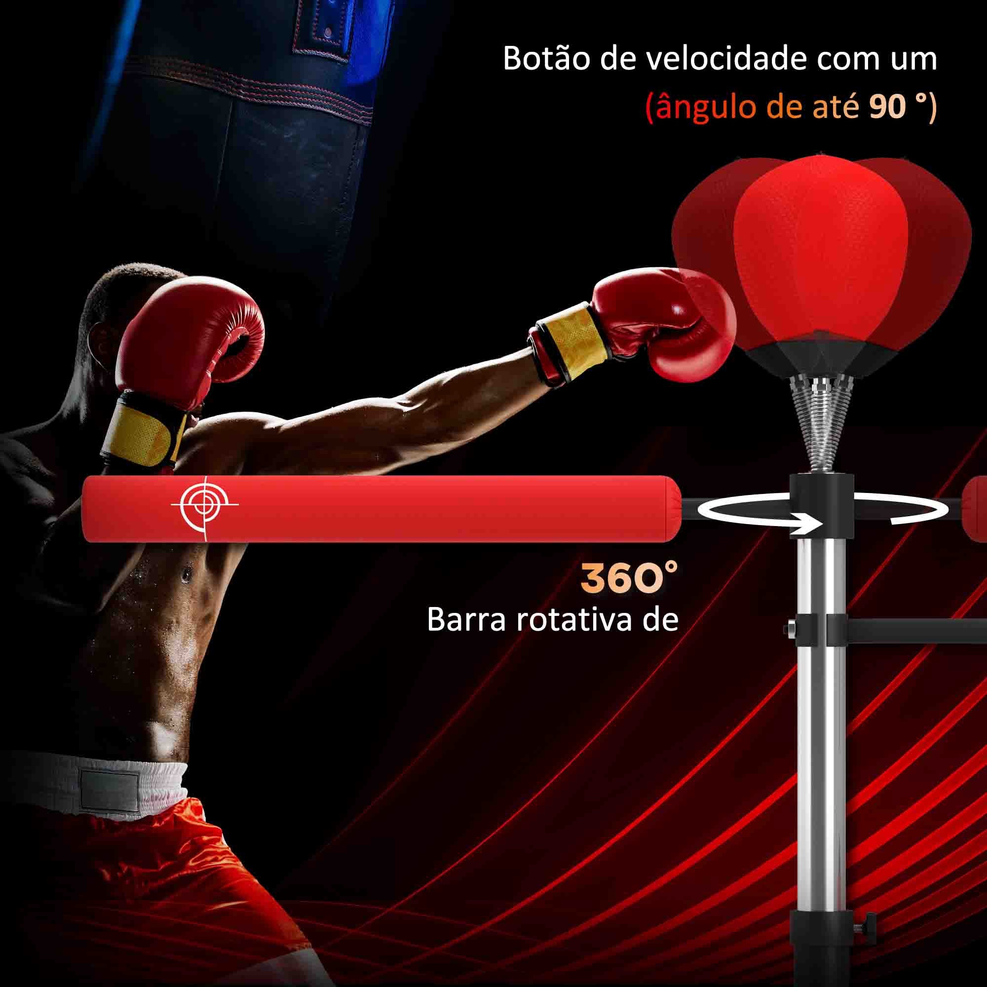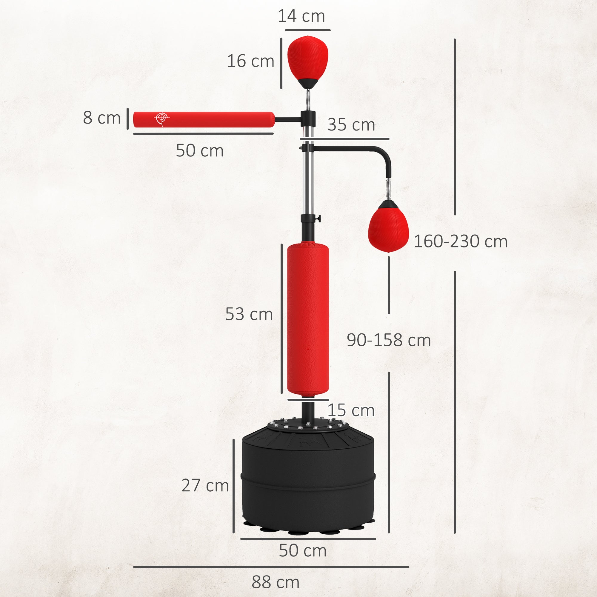 Punching Ball de Boxe com Altura Ajustável com 2 Bolas de Velocidade Barra Giratória 360° e Base Preenchida com Água ou Areia Punching Ball para Adultos 88x50x160-230 cm Vermelho e Preto