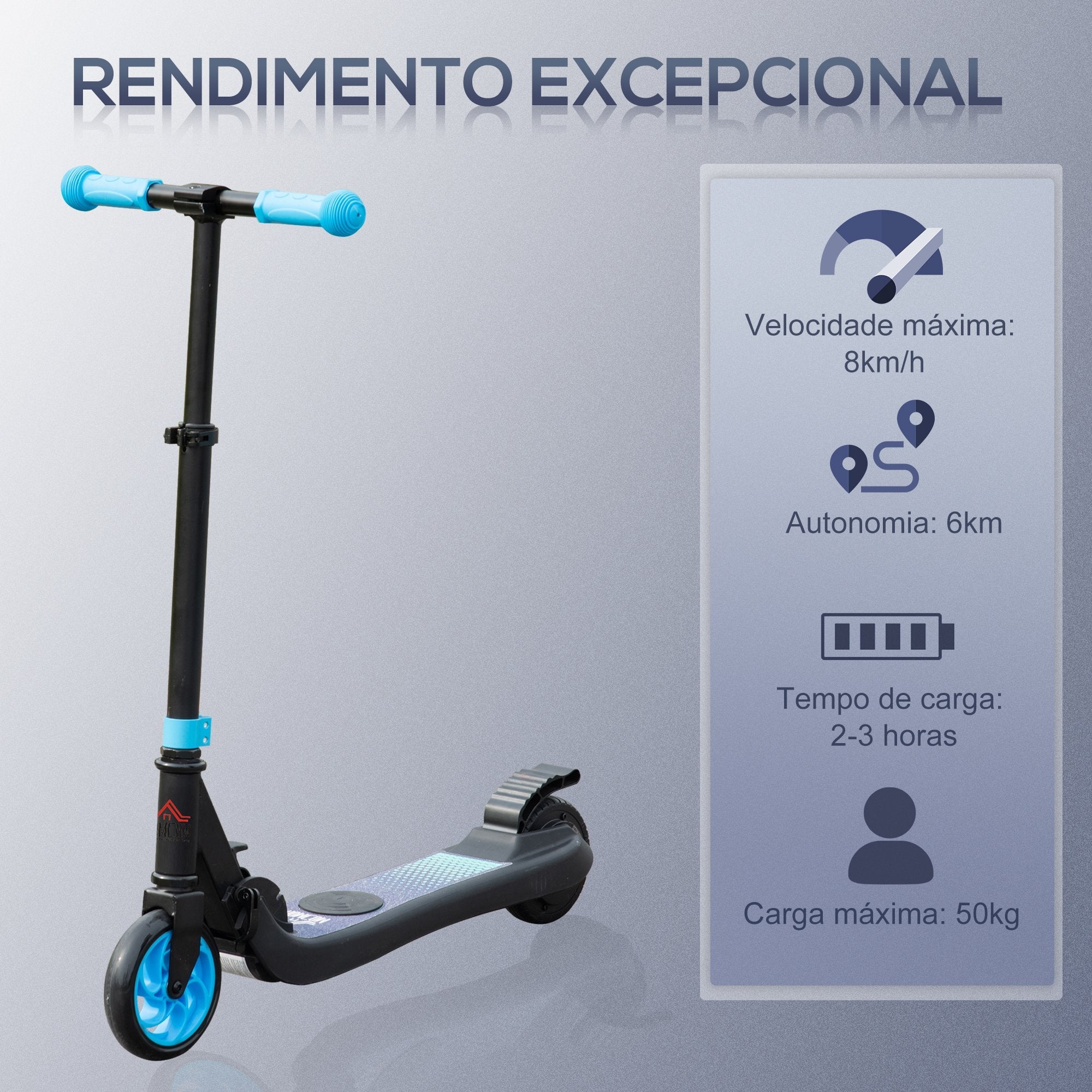 Trotinete Elétrica para Crianças acima de 6 Anos Trotinete Elétrica Dobrável com Altura Ajustável Bateria 24V Velocidade Máxima 8km/h Carga Máxima 50kg 71x36,5x75-80cm Azul