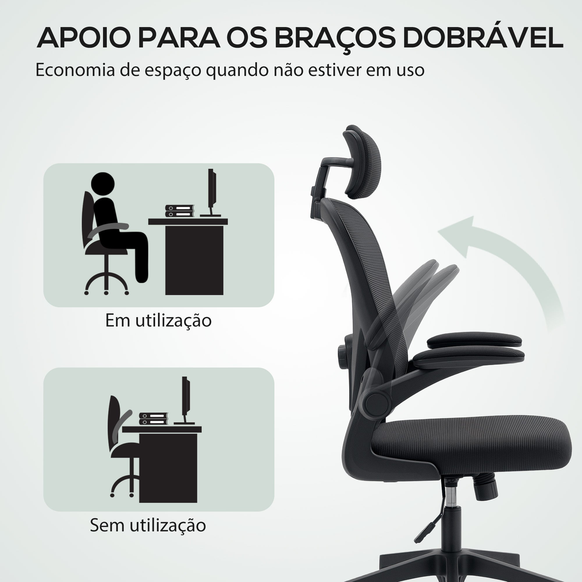 Cadeira de Escritório Giratória Cadeira de Escritório em Malha Transpirável com Altura Ajustável Apoio para a Cabeça e Suporte Lombar Ajustáveis Cadeira de Escritório Basculante Carga 120 kg 58x63x115-125 cm Preto