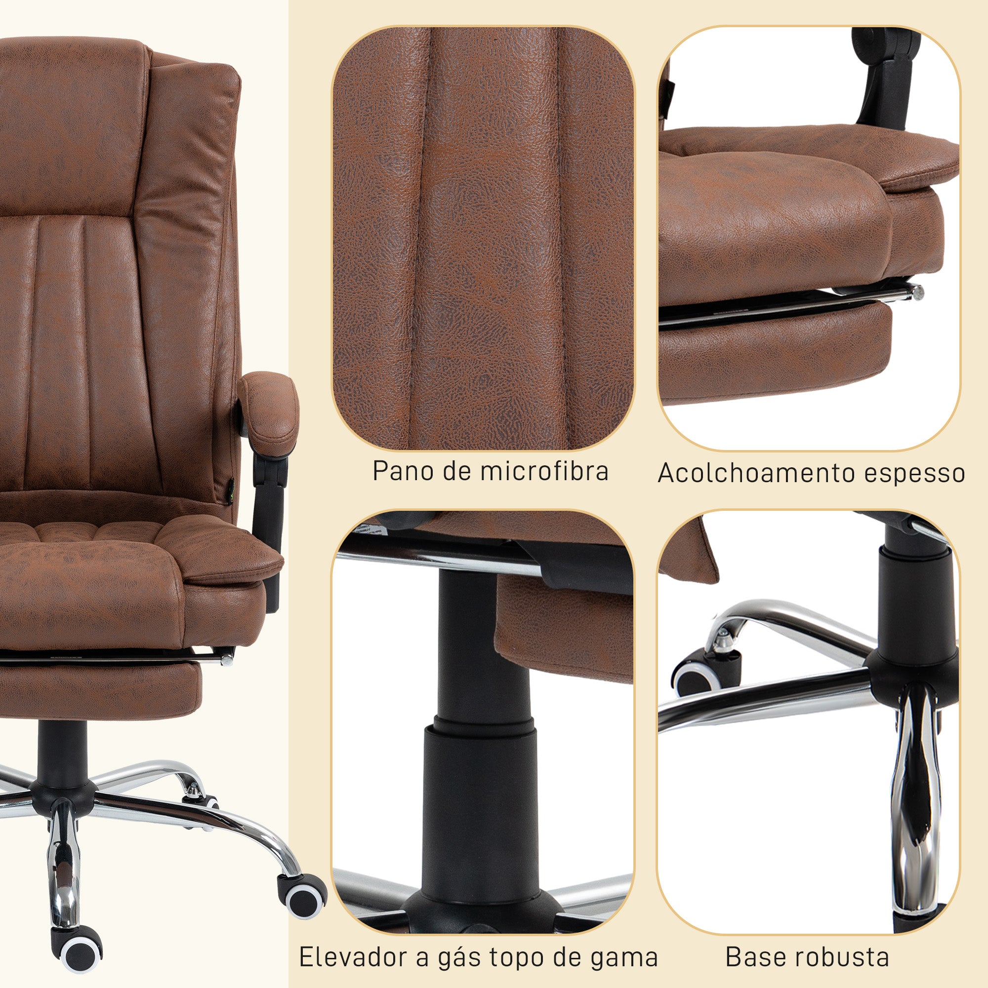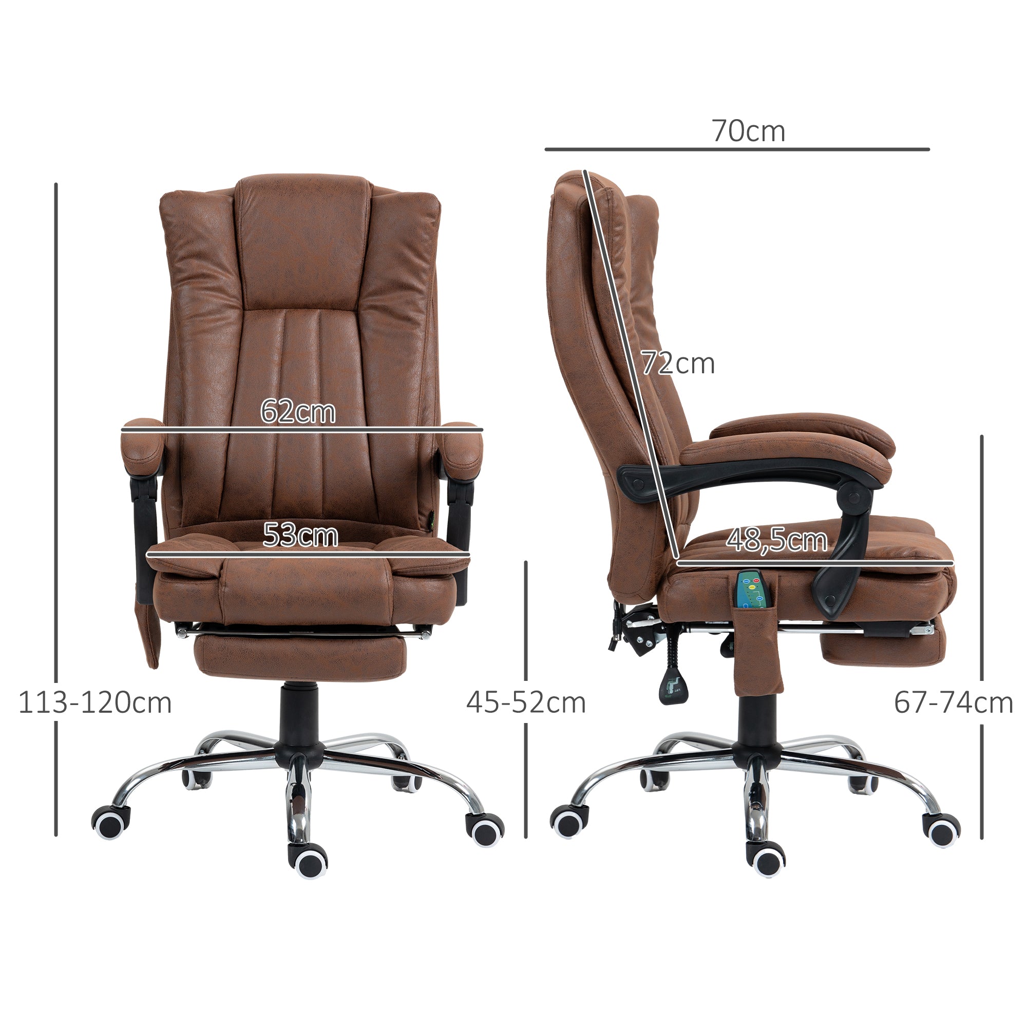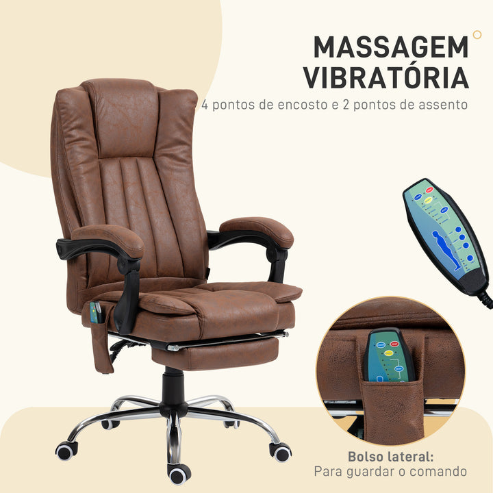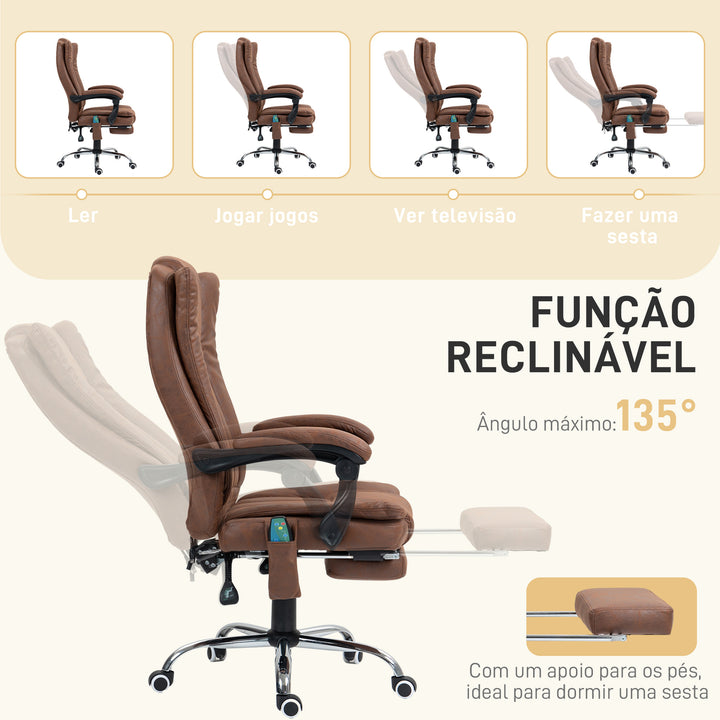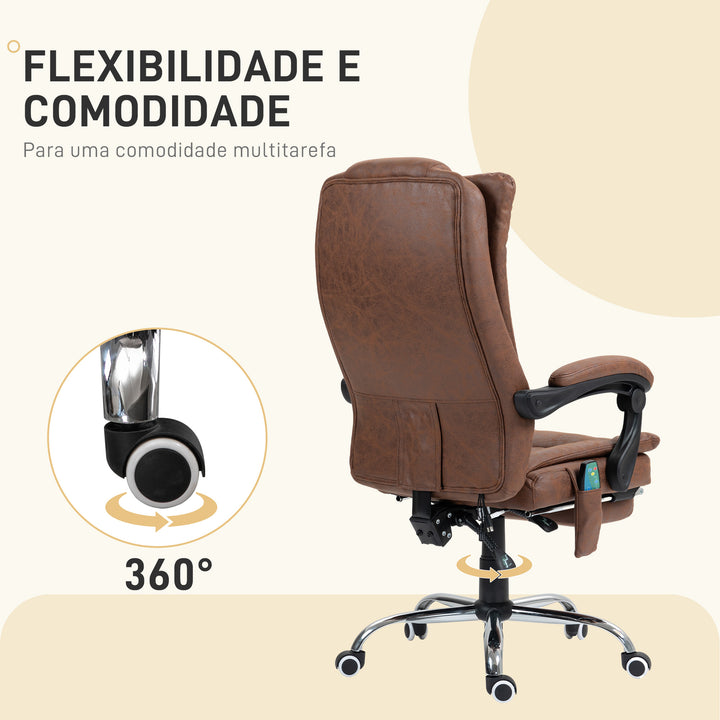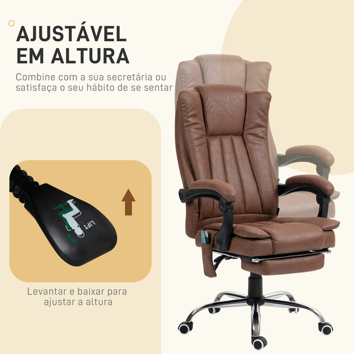 Cadeira de Massagem com 6 Pontos de Massagem Cadeira Giratória de Escritório Reclinável com Altura Ajustável Função de Aquecimento Apoio para os Pés Retrátil e Comando à Distância Marrom