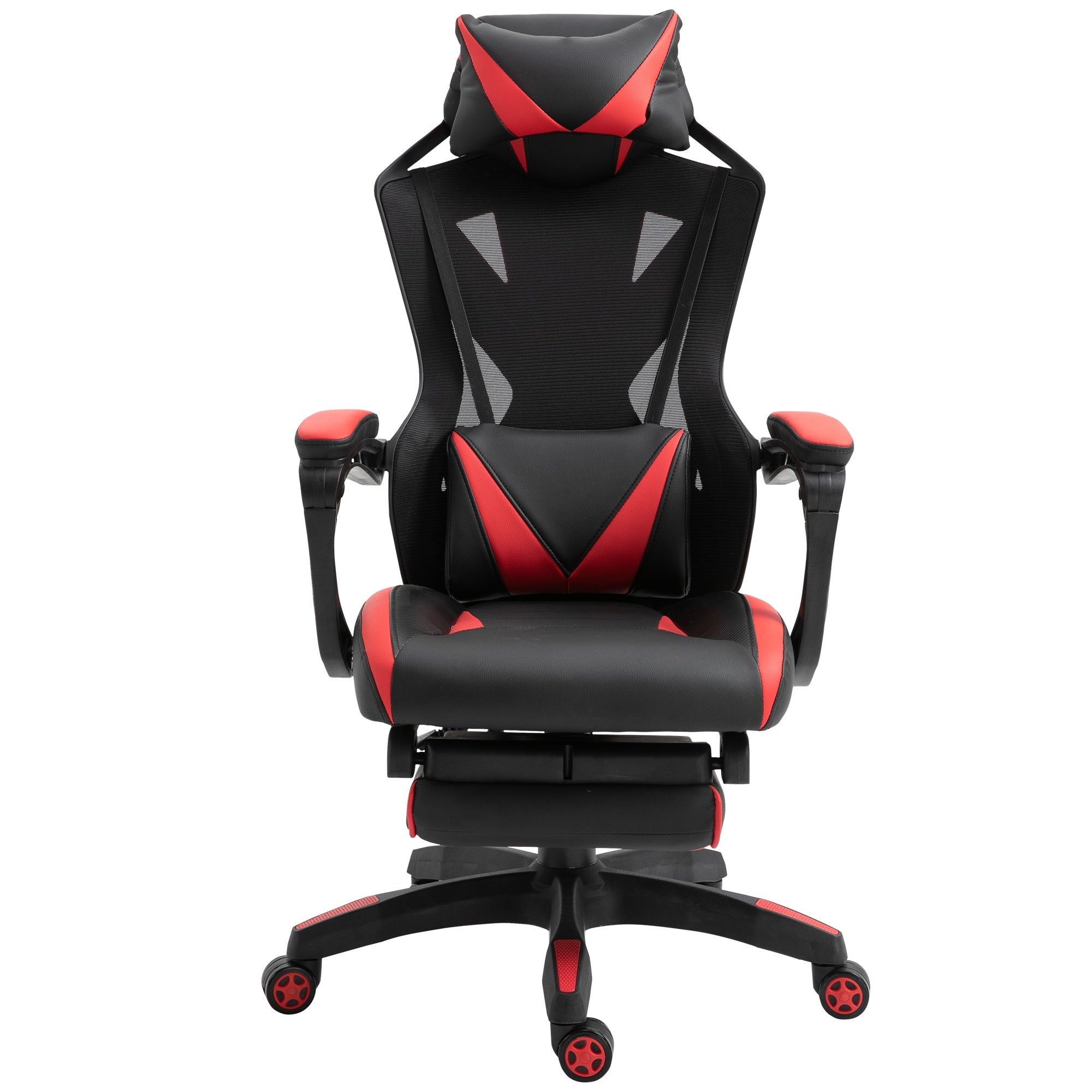- MEDIDAS: 65x70x117-125 cm (CxLxA). Suporta um peso total máximo de 150 kg. Se você está procurando uma cadeira de jogos moderna e super confortável, esta cadeira de jogos com encosto ajustável Vinsetto é a escolha ideal. Seu design ergonômico com almofadas extraíveis na parte inferior das costas e no apoio de cabeça é ideal para adotar uma postura confortável por horas. Além disso, seu preenchimento de esponja espesso e seu acabamento em couro PU o tornam adequado para o uso diário. Esta cadeira de jogos com encosto ajustável é completada com um apoio para os pés retrátil, ideal para adotar uma postura super relaxada e, quando você para de usá-la, basta colocá-la na posição inicial. Caberá sob o assento e não ocupará espaço na sala. Não perca esta cadeira de jogos de aparência esportiva que encantará jovens e idosos.